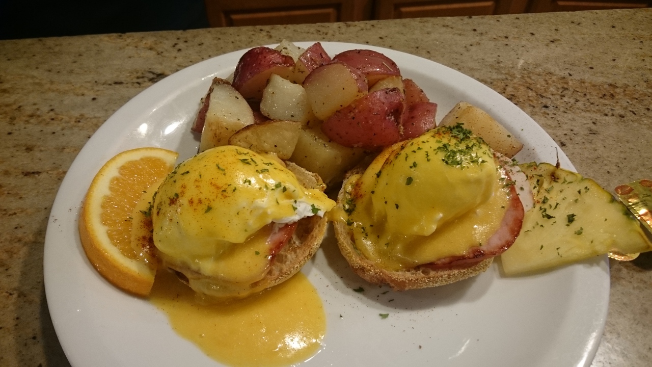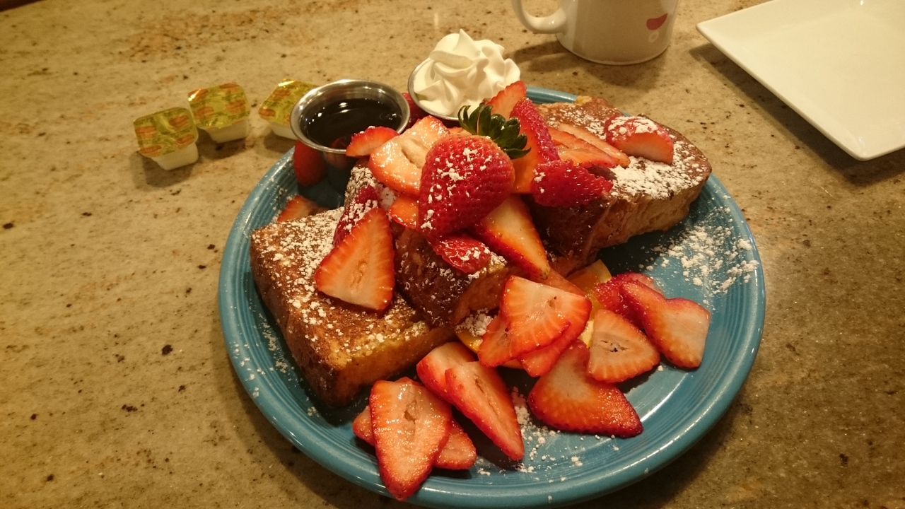 トラディショナルエッグベネディクトとフレンチトースト(ストロベリートッピング)を注文し、2人でシェアしました。