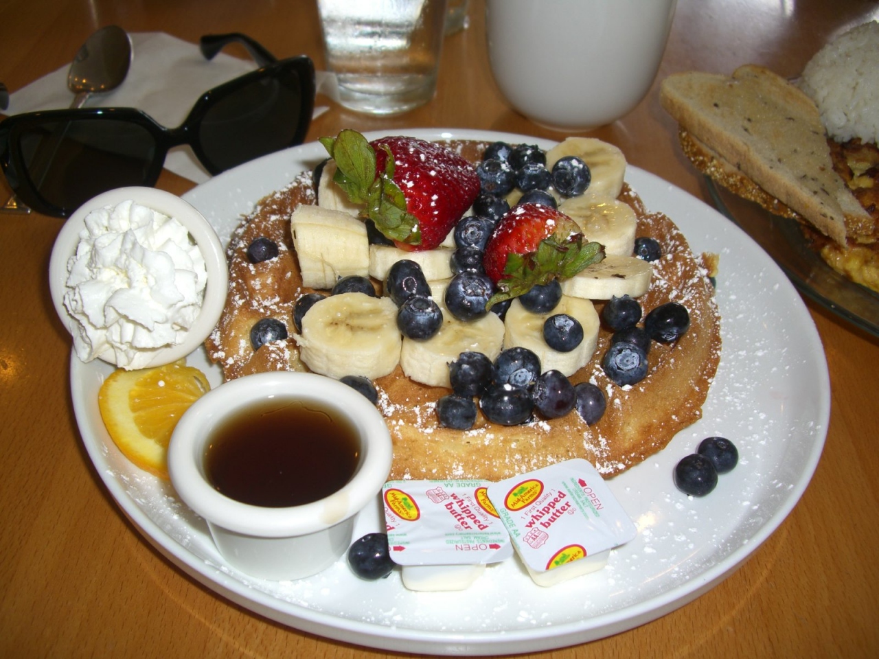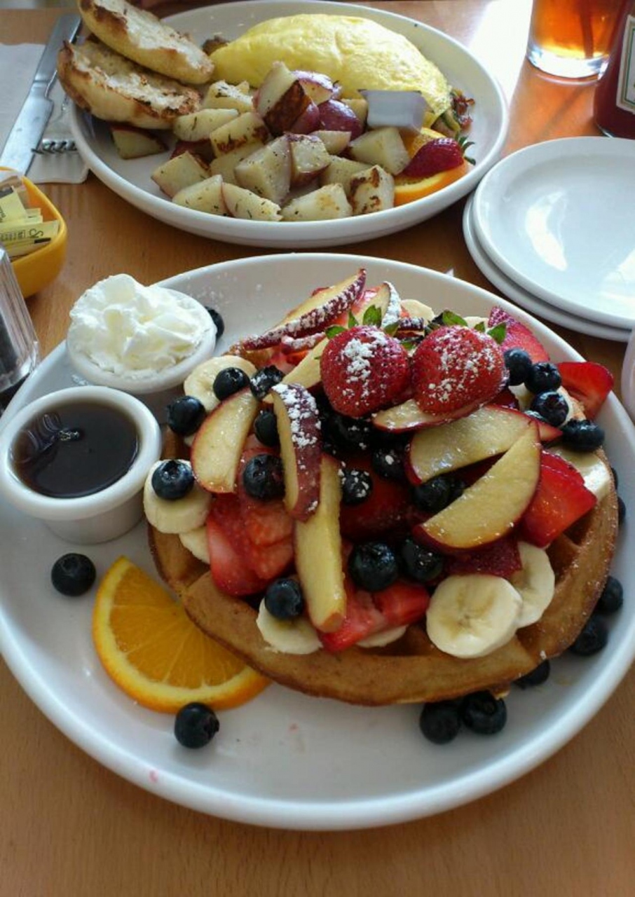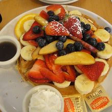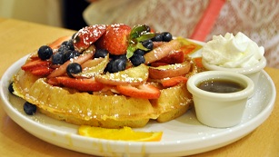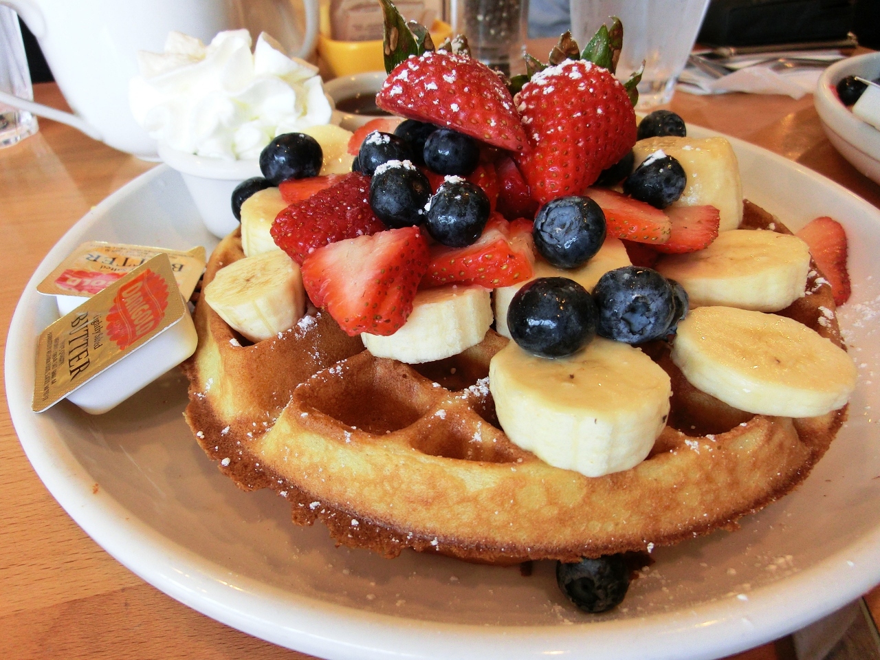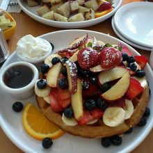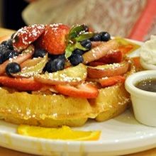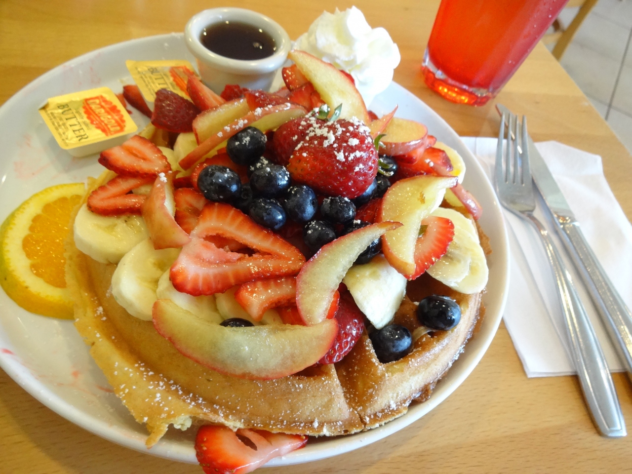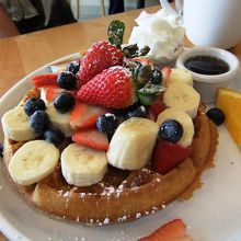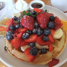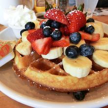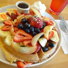 フルーツたっぷりのワッフルは、見た目も味も楽しめます