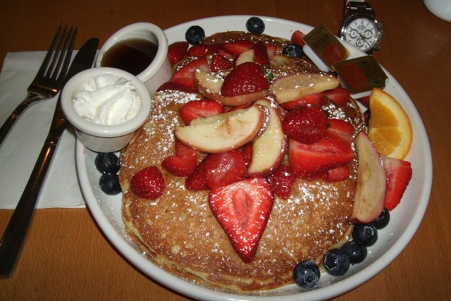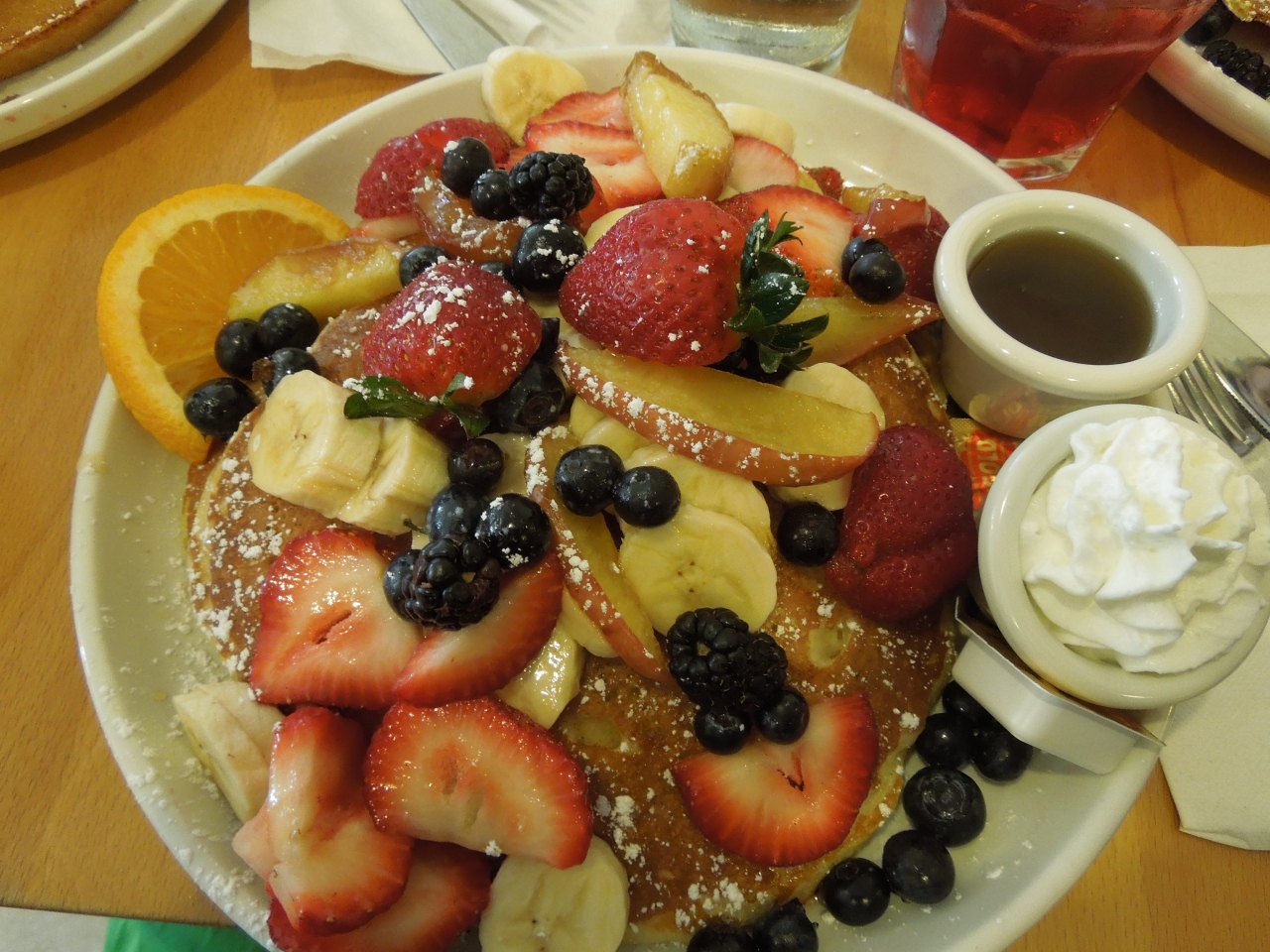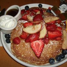 3枚+トッピングのフルーツを乗せるとかなりボリュームがあります。
