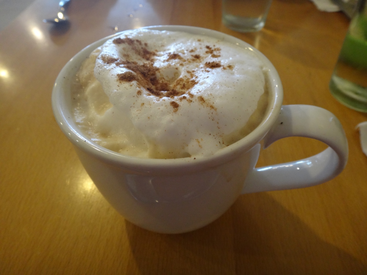 飲み物は、カプチーノのダブル(3.3ドル)とチャイラテのダブル(4.15ドル)を頼みましたが、チィイラテはチャイの味がしませんでした。