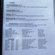 子供用にお皿とフォークも貸してくれます。ホット... 続きを読むコーヒーはグラスに入ってきます。お店は清潔感があり、各テーブルに小さなお花が飾ってあって、カジュアル&かわいらしい雰囲気です。でも、お客さんは体格のいいロコがたくさん。7時半ごろ行った時はまだガラガラでしたが、帰る頃は満席でした。