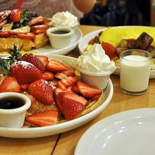 パンケーキは、ちょっと量が多過ぎかな?という感じでしたが、ワッフルの方は適量で、外はサクッ中はフワッという食感が楽しめフルーツとの相性も抜群でした。