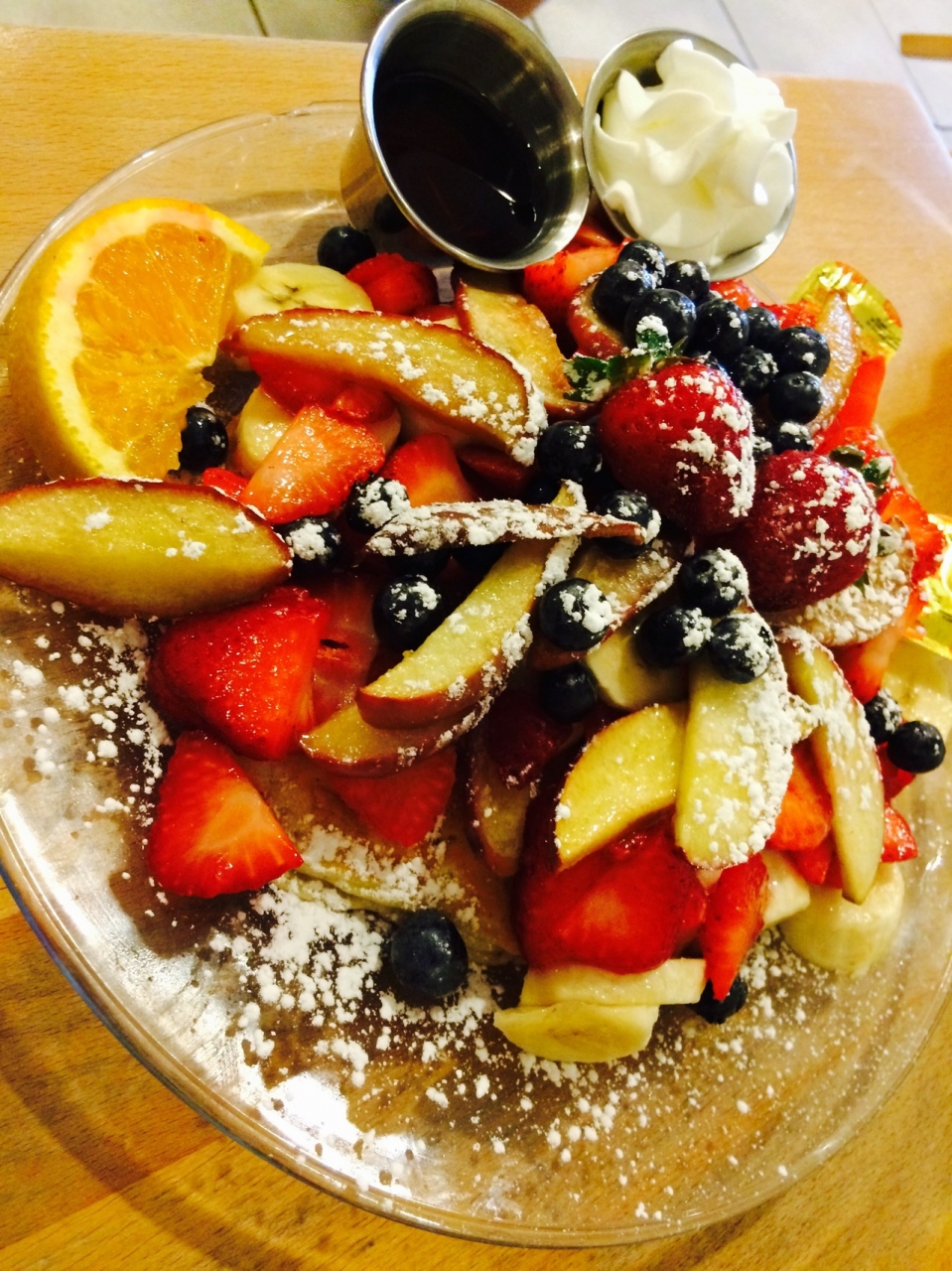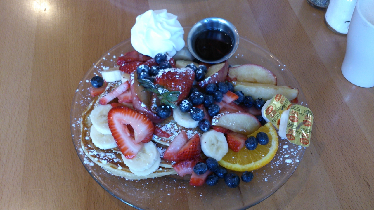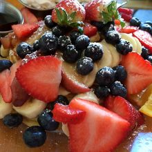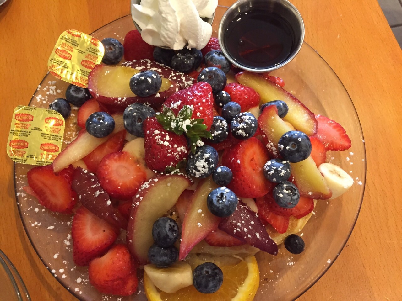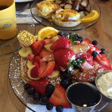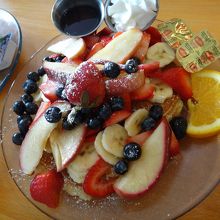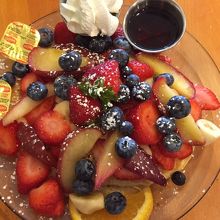 パンケーキは、フルーツ全部のせをオーダーしました。