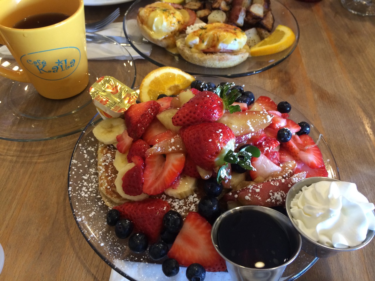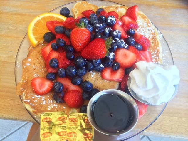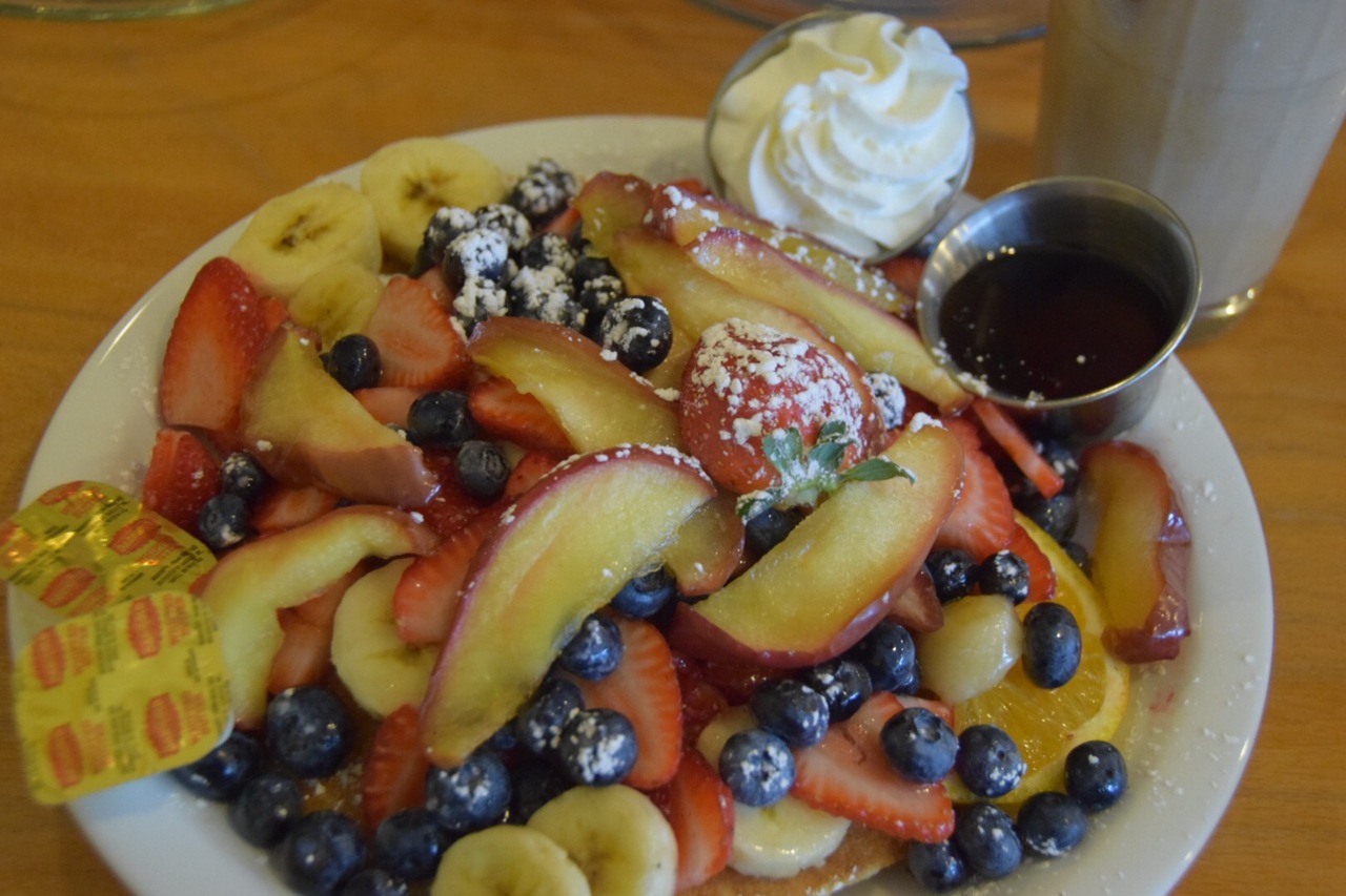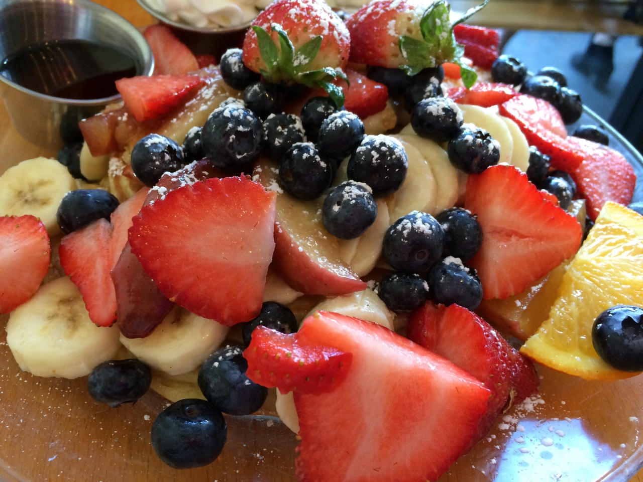 パンケーキは、フルーツ全部のせをオーダーしました。