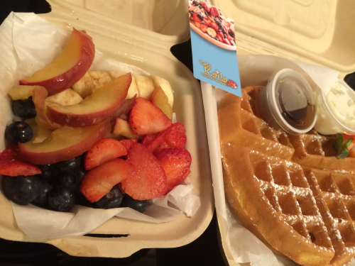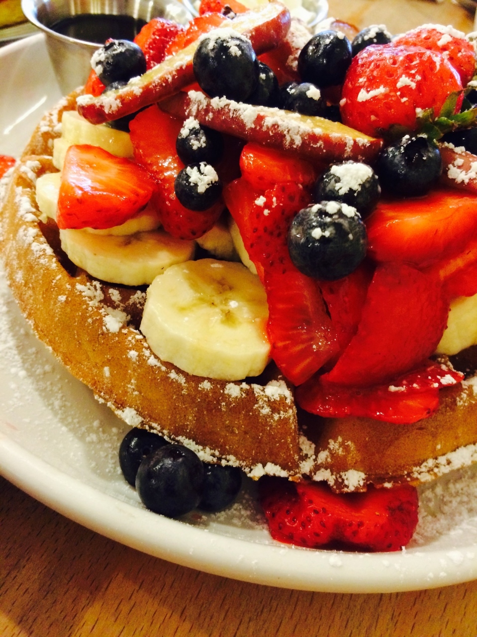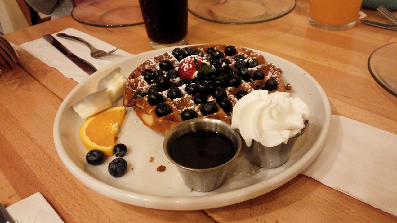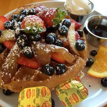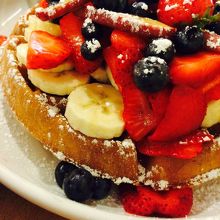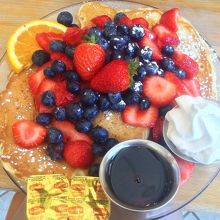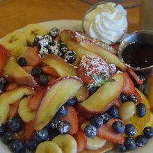 土曜日のKCCに行った帰りに歩いて(途中道に迷って30分程度?のところを1時間以上結果的に歩いてしまった)ようやくたどり着... 続きを読むいたのが、10時過ぎで、15分程待って入れました。4人で飲み物とパンケーキ、ワッフルの全部乗せを頼みましたが、来た瞬間キラキラしてて、みんな笑顔になったのを覚えています。パンケーキやワッフルは熱々で、カリカリ感やフワフワ感はありませんでしたが、フルーツがこれでもか!っていうぐらい乗ってていて、フルーツと一緒に食べるケーキって感じでした。場所が少しわかりにくいのと、帰りのバス乗り場の場所が行きと違う場合はチェックしておいたほうがいいですよ! 閉じる