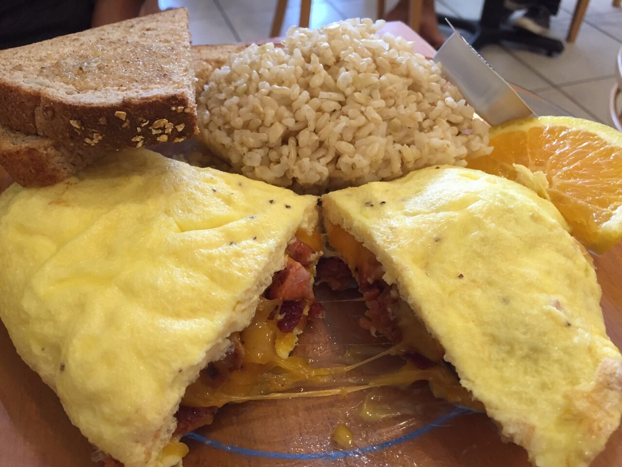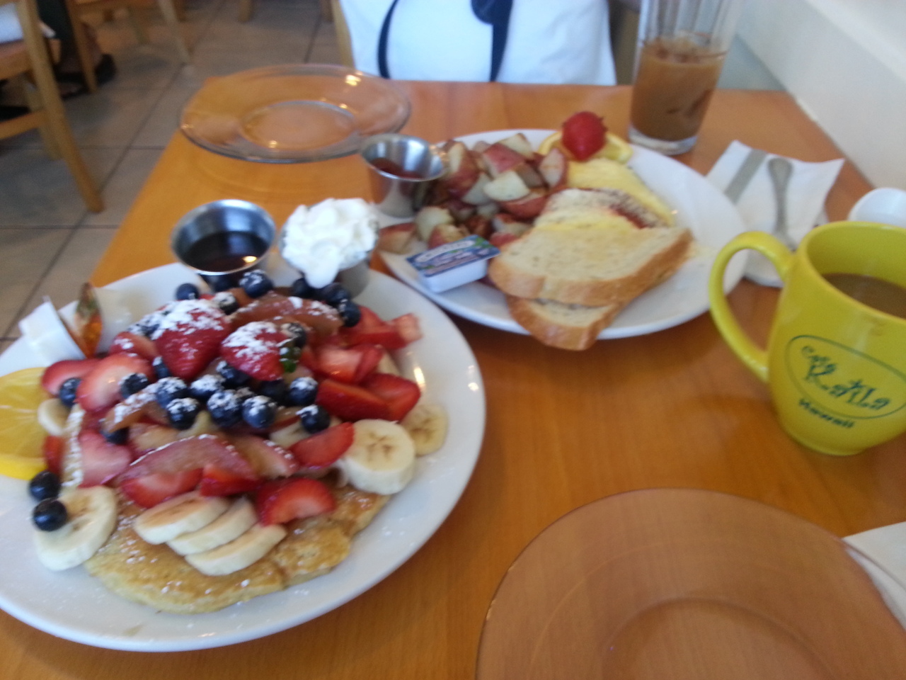◆注文の品:パンケーキ(ALL FRUIT)$17.45、ミート&CHSオムレツ$11.50、レモネード$3.50、グァバジュース$2.75