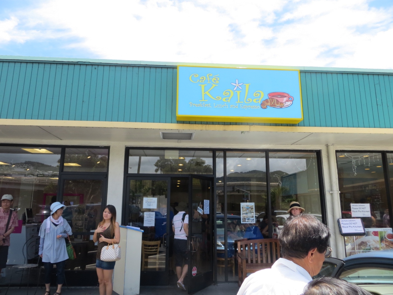 ワイキキから行くには少し離れています。私たちは到着日、説明会終了後チェックインもしないで大きな手荷物を下げてタクシー飛び乗りカフェカイラに行きました。営業時間が15:00(LO14:30)までなのでダッシュで行きました。待ち時間を覚悟していきました。