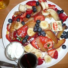 フルーツは美味しく、シロップや生クリームを付けても甘すぎることはなかったです。
