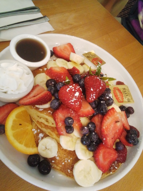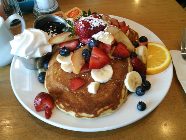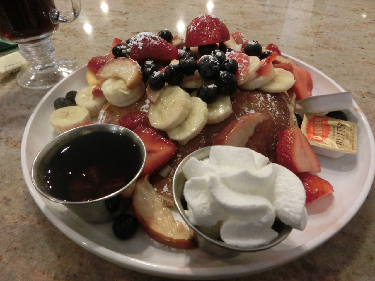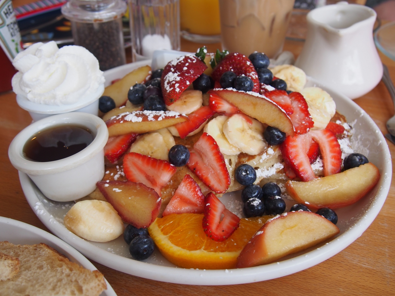 数日後に再訪。お目当てはもちろんフルーツパンケーキ。せっかくなのでフルーツ全部乗せにしました。