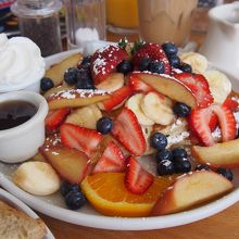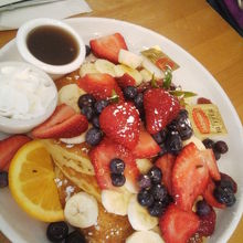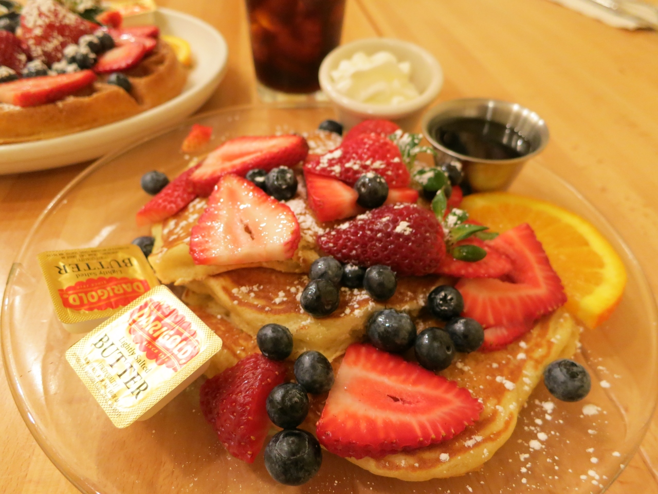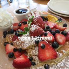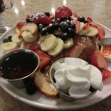 クチコミで人気のパンケーキはフルーツ山盛りで見た目もきれい。