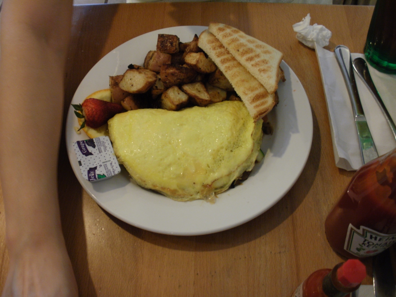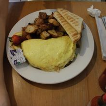 オムレツのほうは、塩味が効いてて、パンケーキの甘さを緩和してくれる役目でした。^^