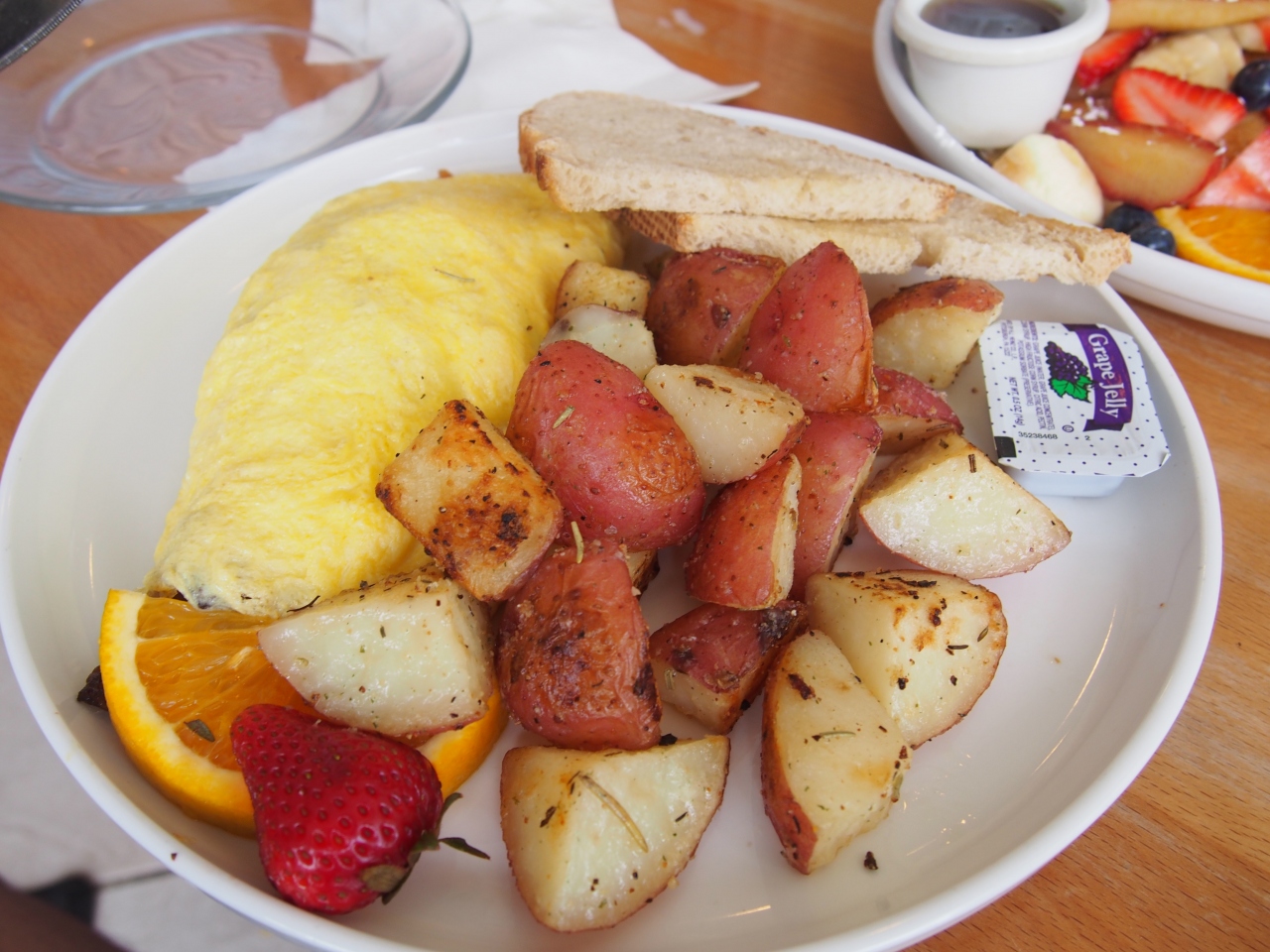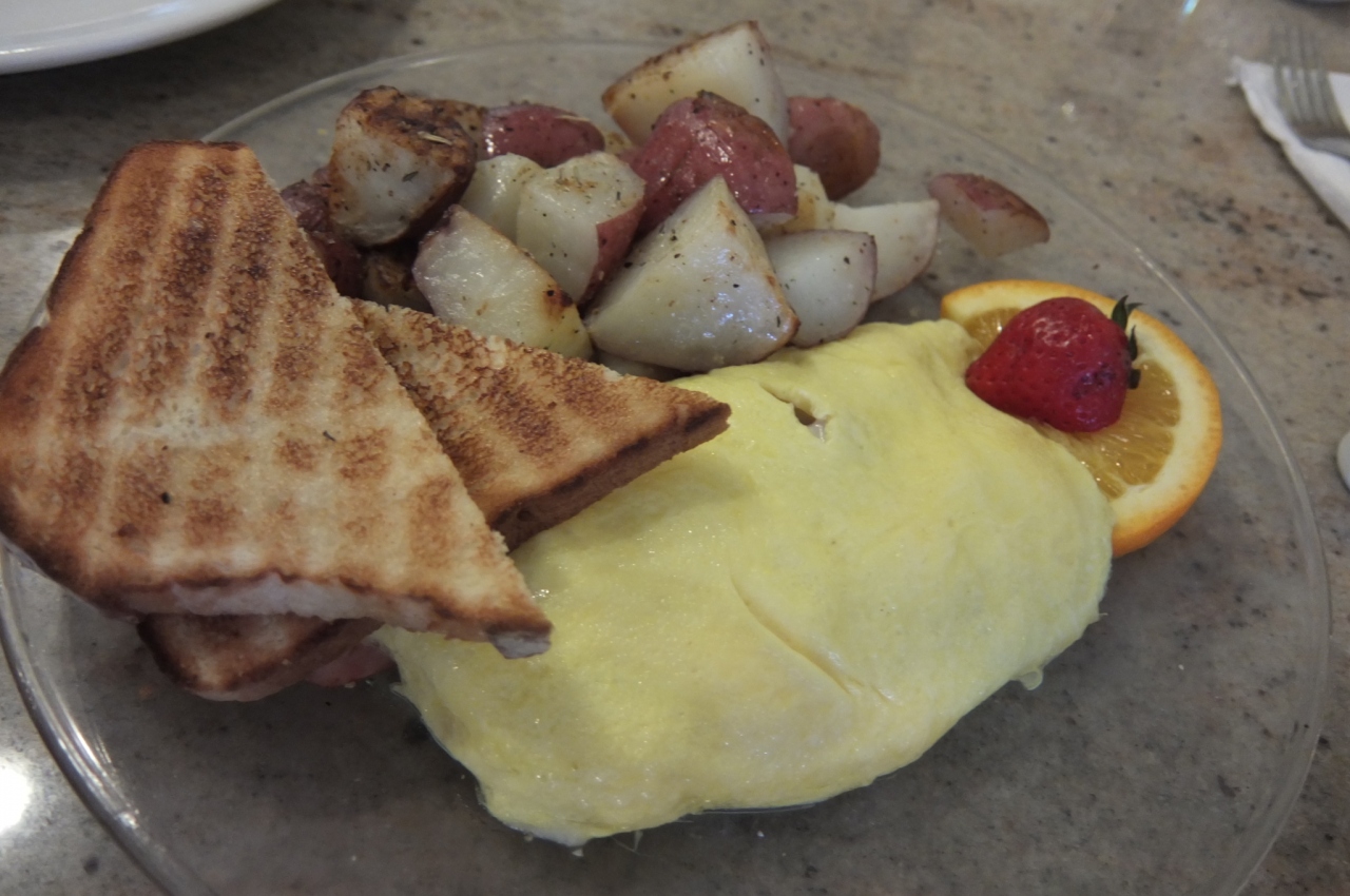 機内でしっかり朝食を食べたばかりだったので、オムレツとトーストは半分以上食べきれませんでした。