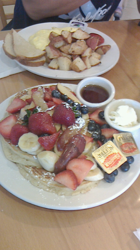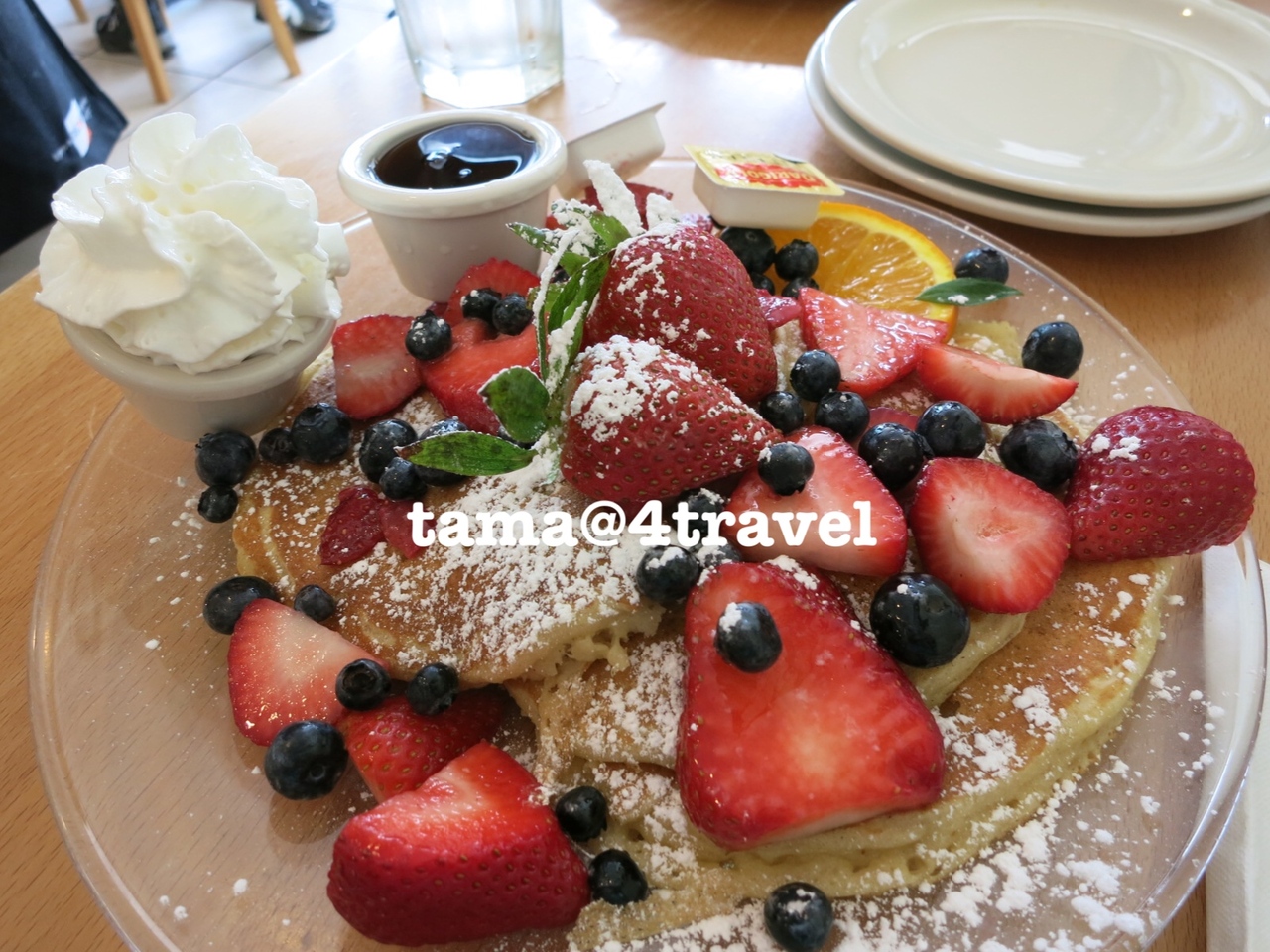 たっぷり果実にパンケーキ3枚とボリュームあるし、パンケーキは食べてるうちに飽きてくるのでね、2人でシェアしてちょうど良かったです。