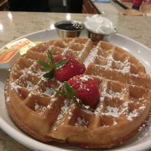 ワッフルは外カリカリ、中フワフワで大きいワッフルがどーんと出てきて、