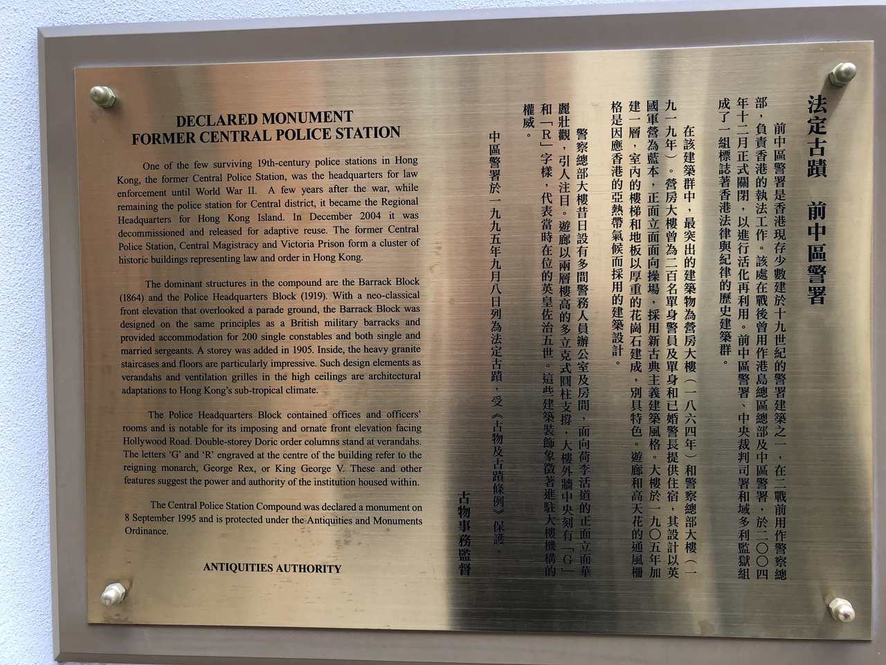 香港島サイドの中環から少し坂を登った先のハリウッドロードに建てられた英国統治時代の香港中央警察署にイギリス軍の駐屯地として... 続きを読む19世紀から使用されている建物です。