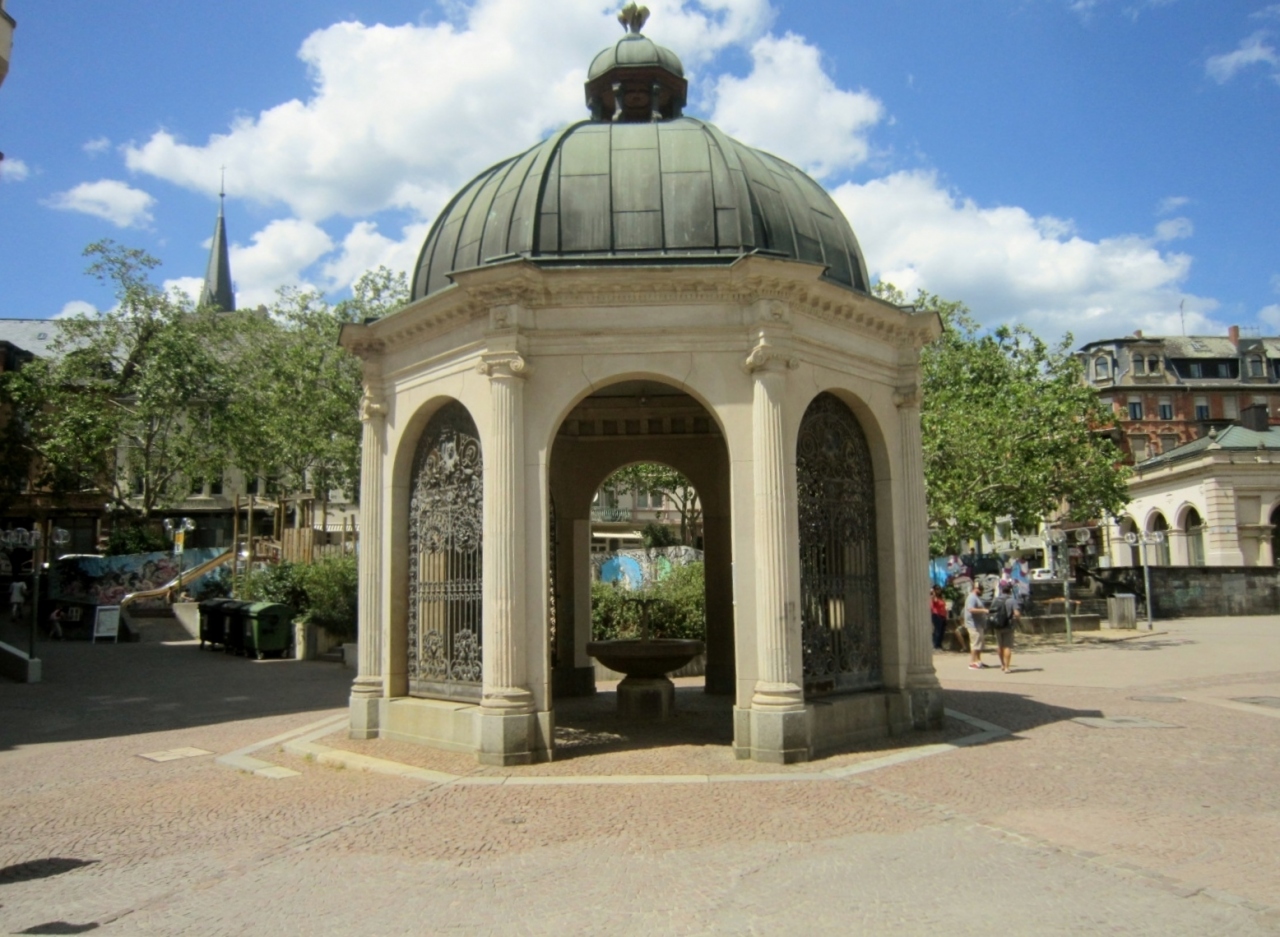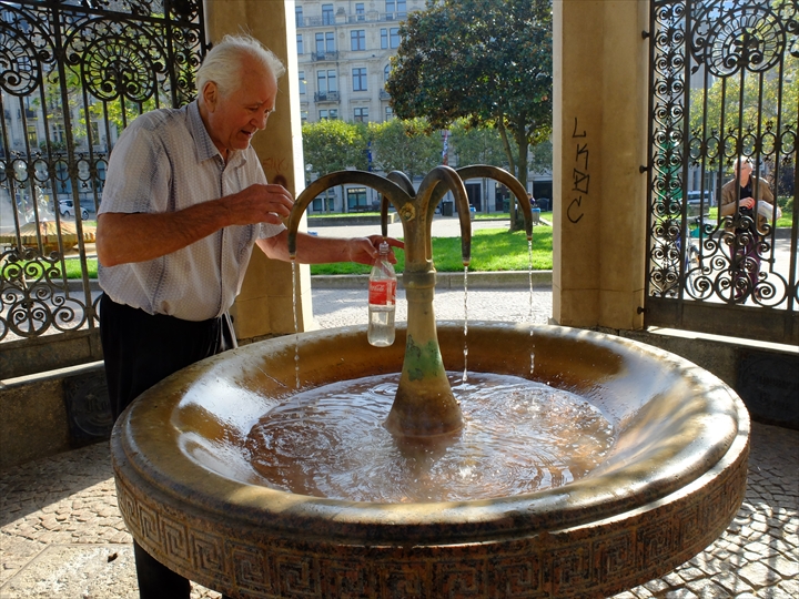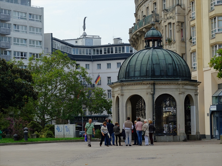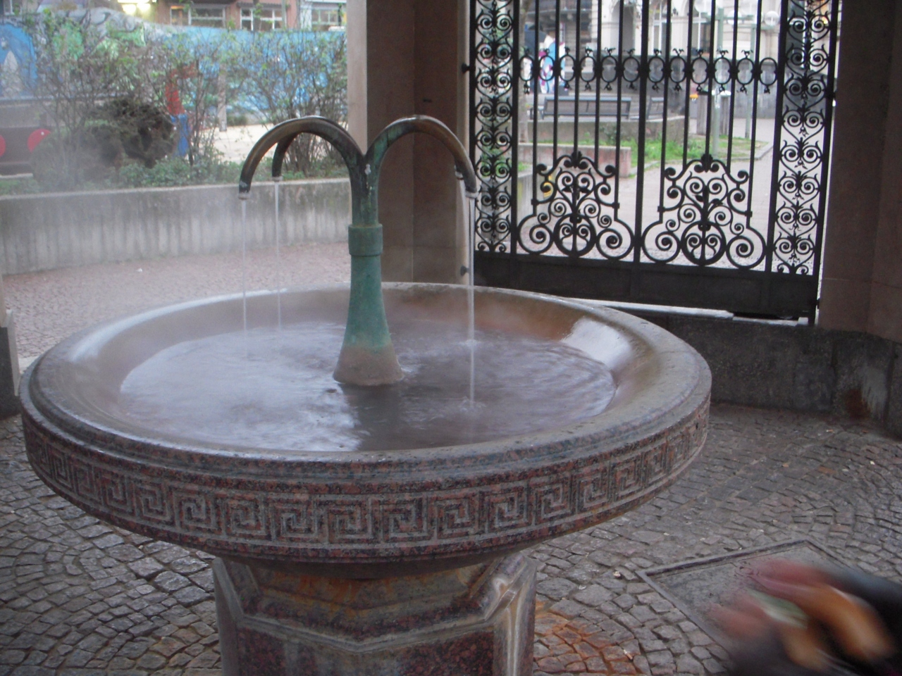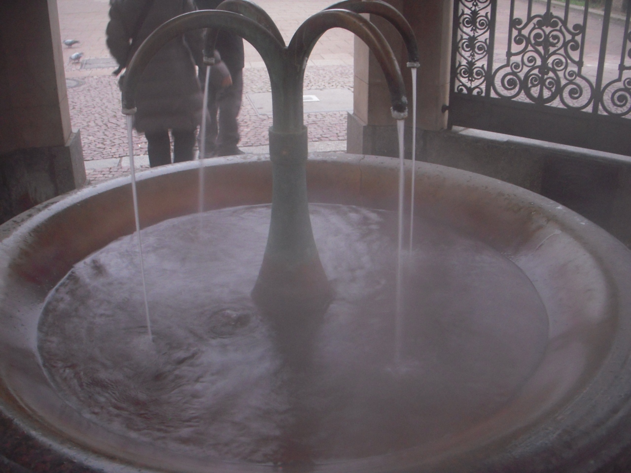 ヴィ―スバーデンに湧く温泉源の一つ。飲用に汲んで行く人もいます。