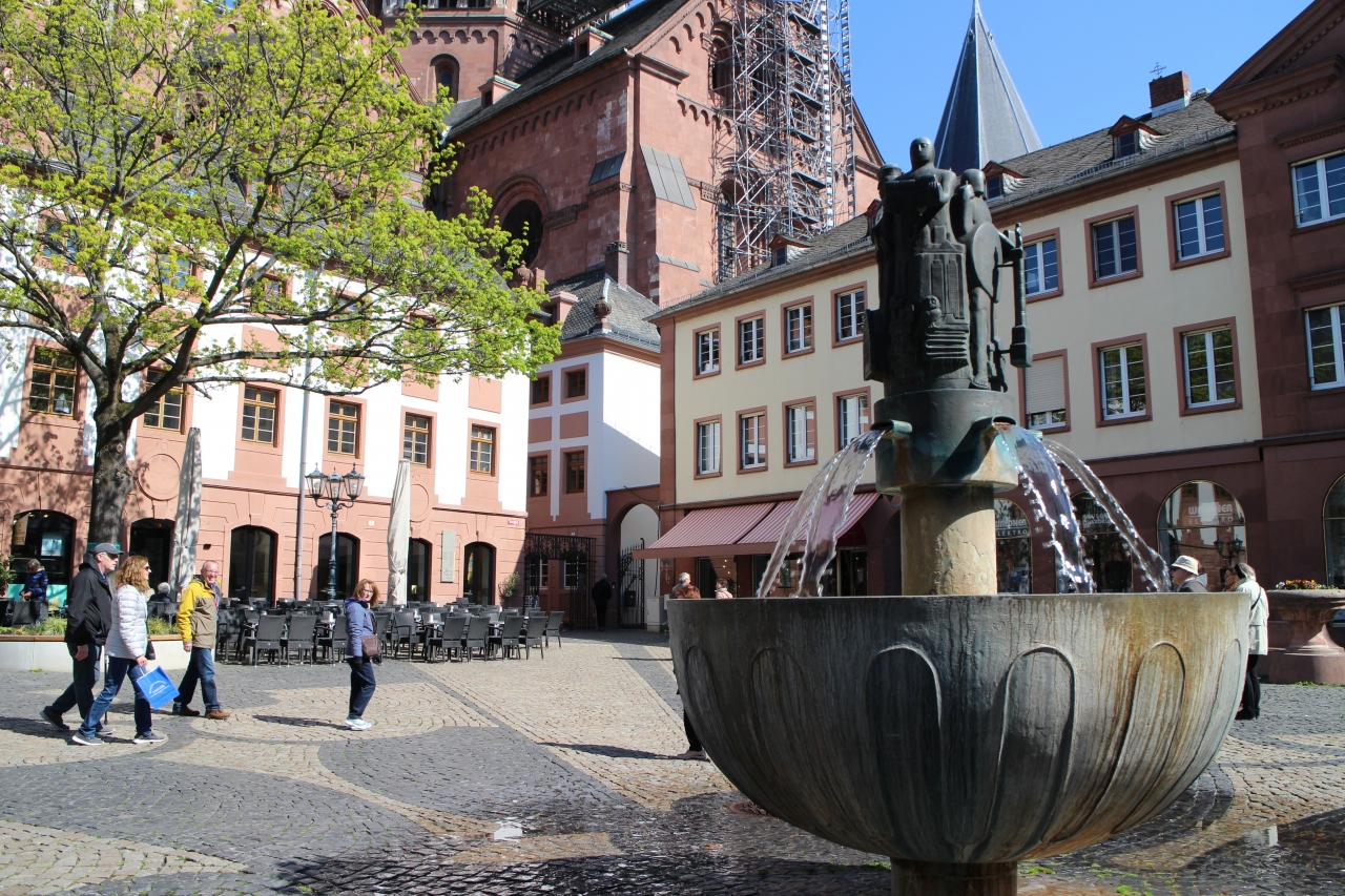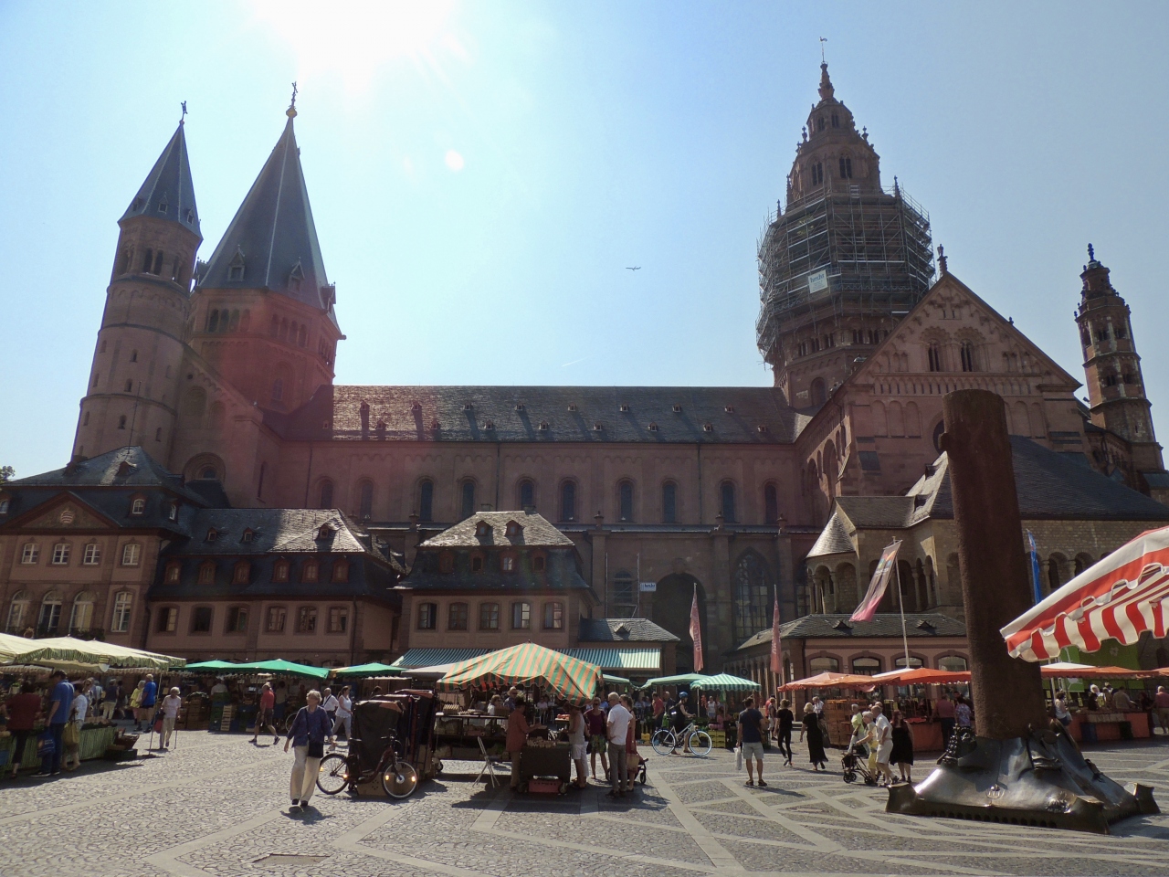 マインツ中央駅から、川へ向かって散歩中に通った広場。広場の横は大聖堂。平日の昼間だったので、観光客よりも、近所の人が集う憩... 続きを読むいの場。音楽を演奏している人、カフェでのんびりコーヒーを飲んでいる人、ガイドに連れられて大聖堂をめぐっている人、オクトーバーフェストが近いからか地ビールや地元ワインをイベント的な屋台で売っている人、色々な人がいてのんびりとした雰囲気だった。 閉じる