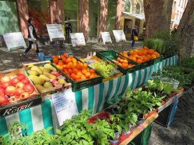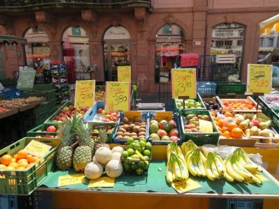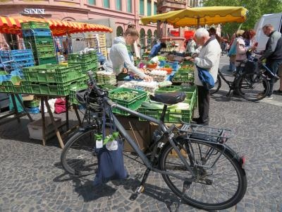 Mainz マインツのMarktplatz マルクト広場では、火・金・土 8時ぐらいから14時まで(公式には07:00-1... 続きを読む4:00)Wochenmarkt 朝市が開催されています。約85の出店者が周辺地域の新鮮な食材を提供して下さっています。日替わりで出店する約30店舗ぐらいあるようです。季節の目玉商品は新鮮なイチゴ、おいしいアスパラガス、キノコ、ブドウなどでこの地方で採れた一流のオーガニック製品を探しすのであれば、マインツの朝市がおすすめです。