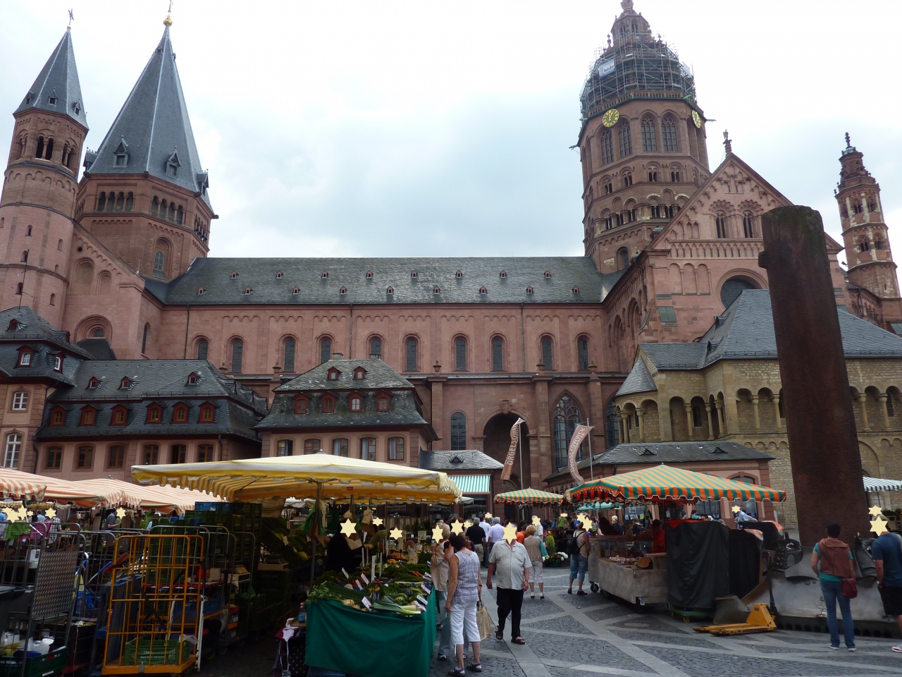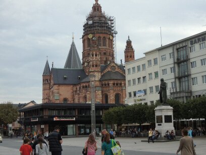 マインツの繁華街の中心なのかな。土曜の昼ごろに行ってみました。マインツの駅からは少し歩きます。教会横の広場ではマルクトが開... 続きを読むかれていて人でいっぱいでした。でも2時ごろにはきれいに店じまいしてしまって、「え、もう終わり?」と思ってしましました。朝が早いのかな。