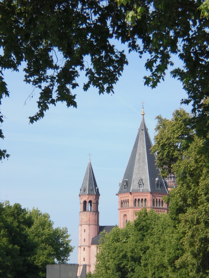 教会の裏手にはライン川が流れています。結構大型の船も通ります。ライン川下りの出発点でもありますね。一般的な日本のツアーではマインツから乗ることも降りることもないでしょうが。