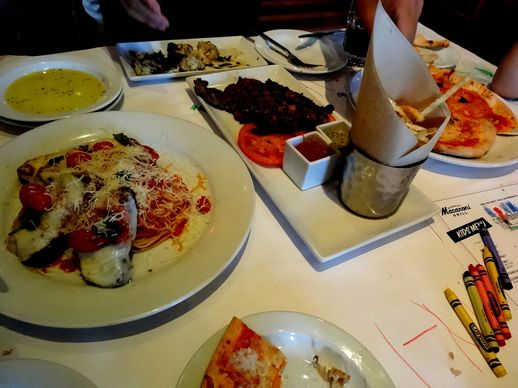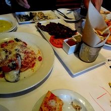 ハッピーアワーのピザを2枚、ビールを人数分頼んで飲んでいたら、食事時になったので、肉やパスタなどを追加注文して、そのまま夕食になりました。子供達は和食党なのでイタリアンはほとんど食べないのですが、この時はピザやパスタ、肉などしっかり食べました。食べるのに飽きても、テーブルにかかっている紙にお絵描きできるので、ずっといい子にしていてくれました。 閉じる投稿日:2013/08/22