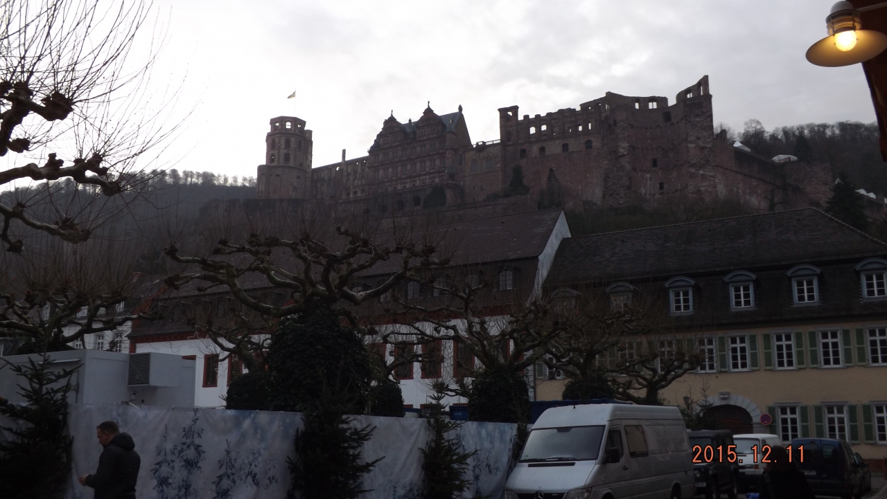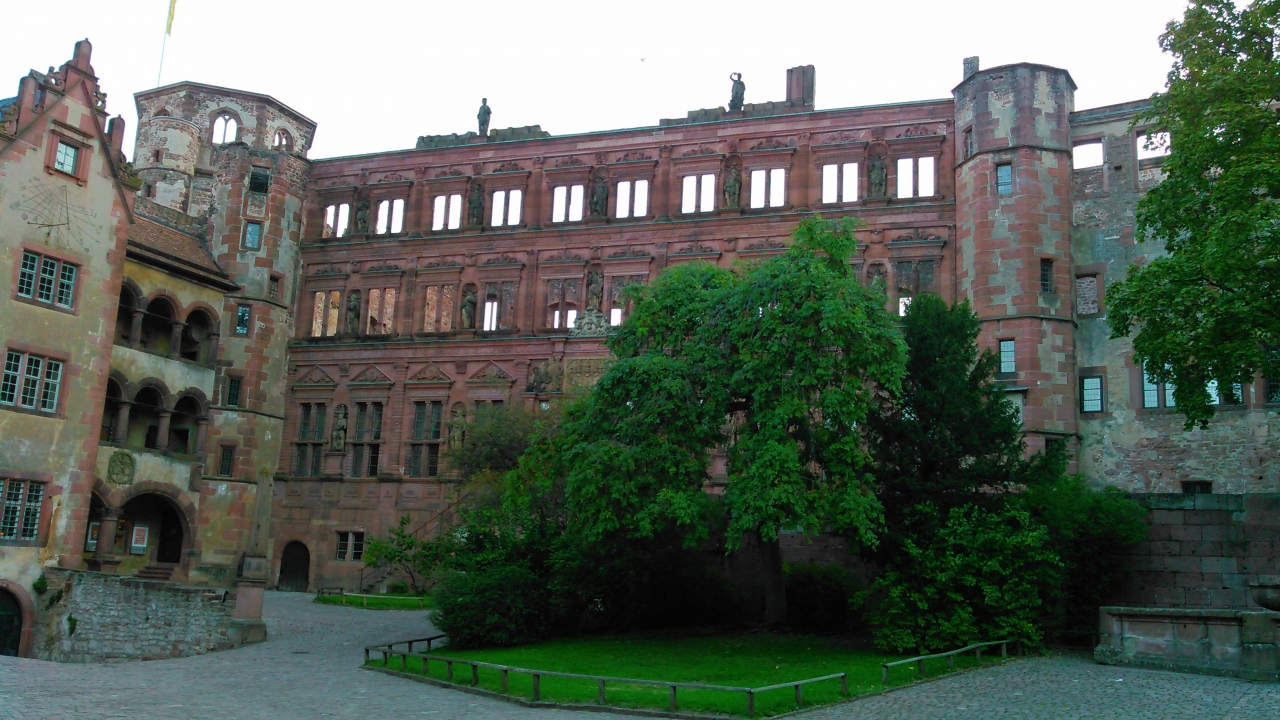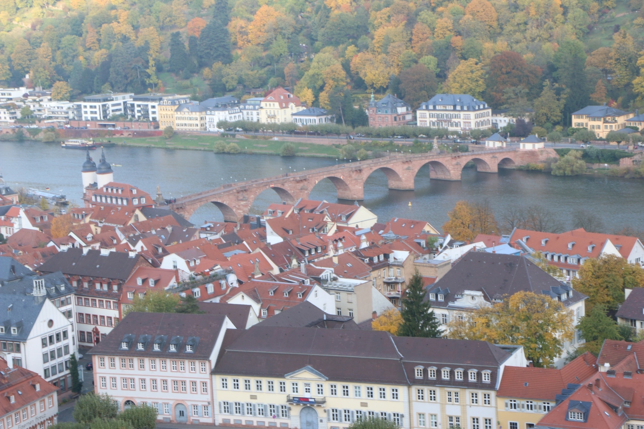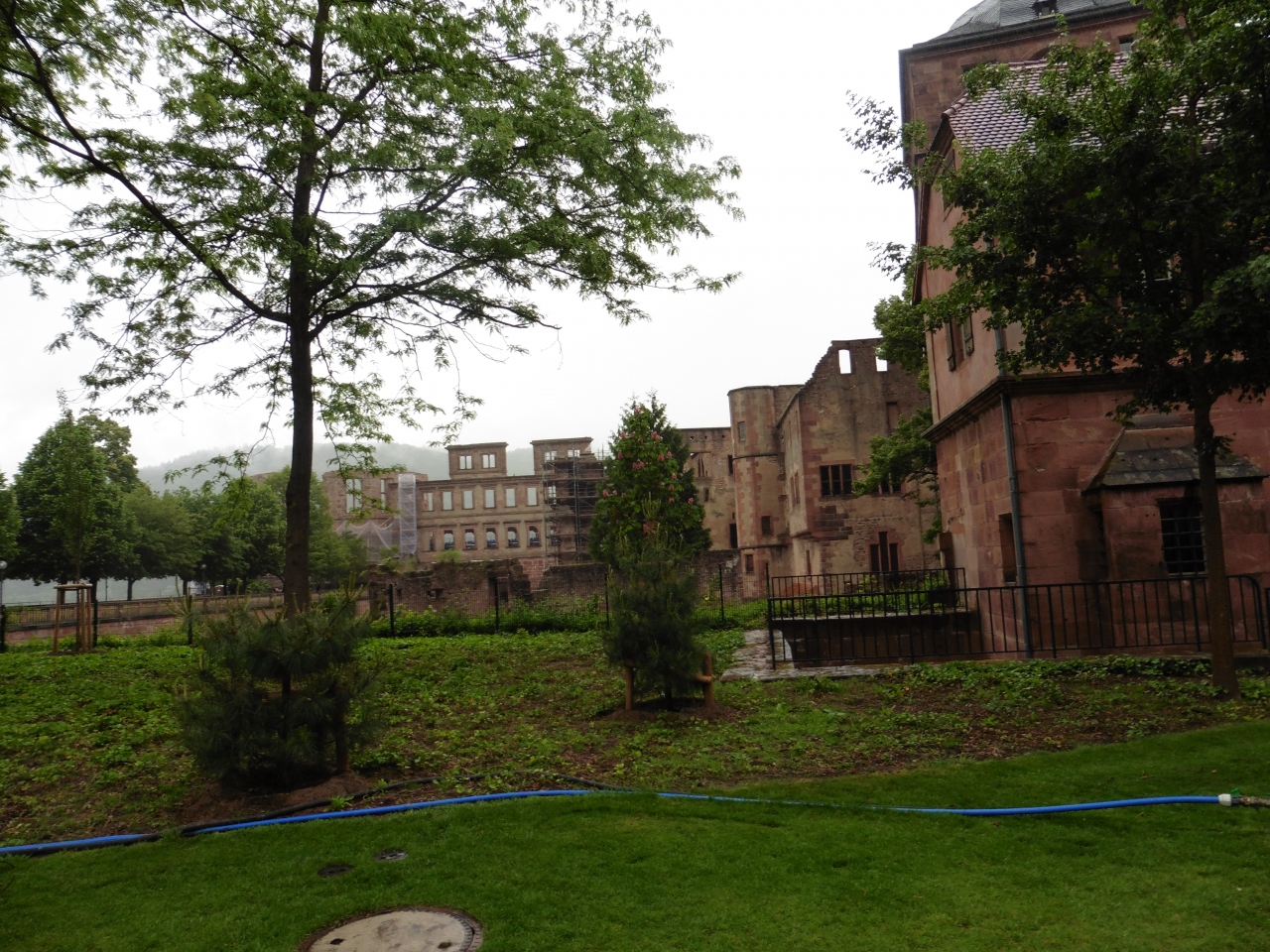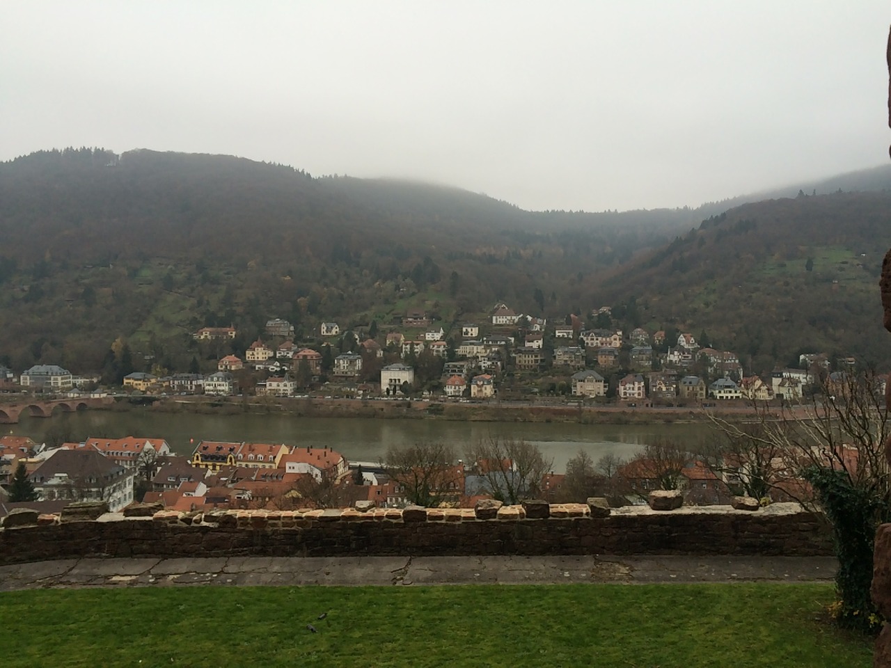 ツアー開始までの間や、ツアーに参加しない場合も、アーチをくぐった先が広場になっていて、正面にお城、右手に薬事博物館があるので、まずはお城の右脇の小さなアーチを入りましょう。その先が展望スポットのバルコニーになっていて、ハイデルベルクの街並みのパノラマが素晴らしいです。