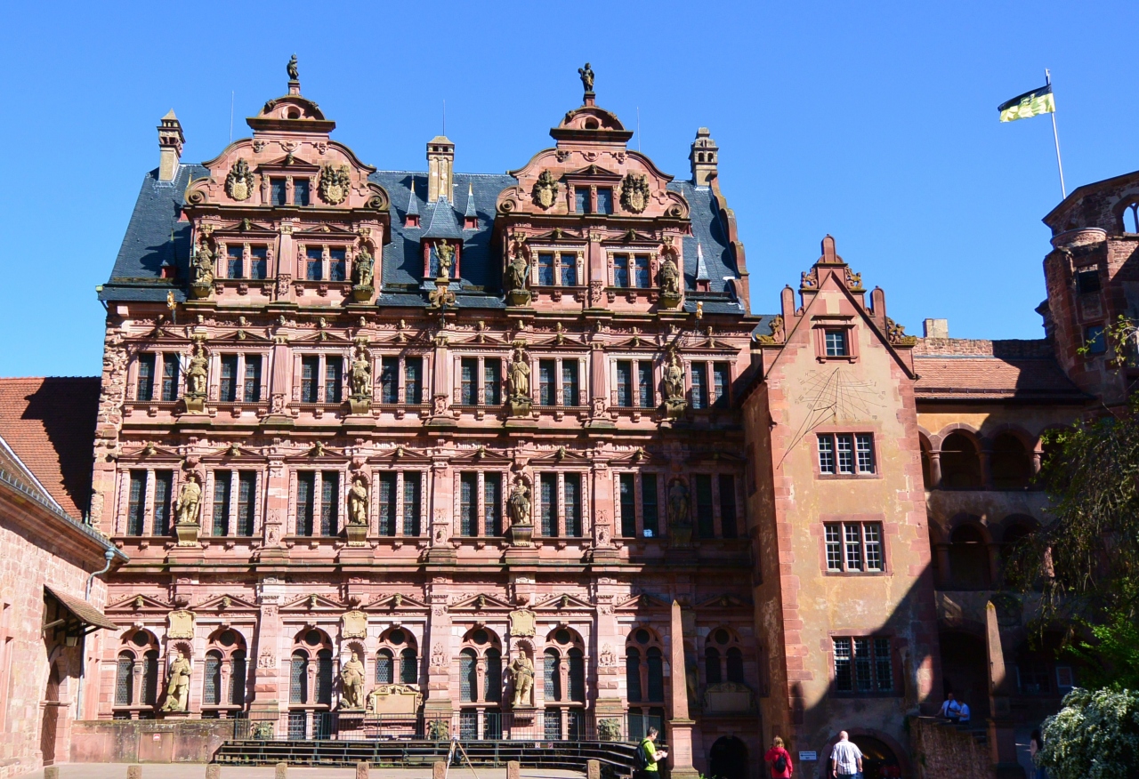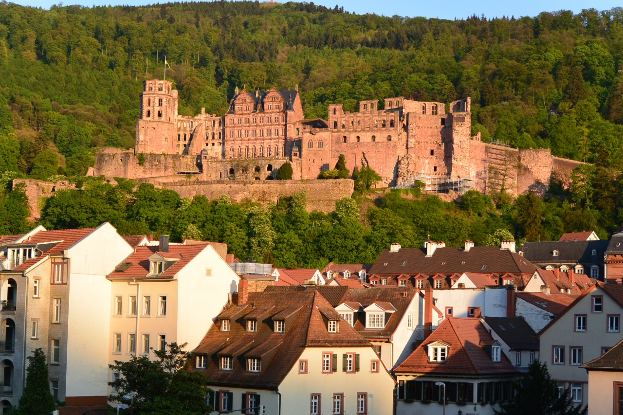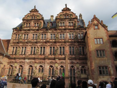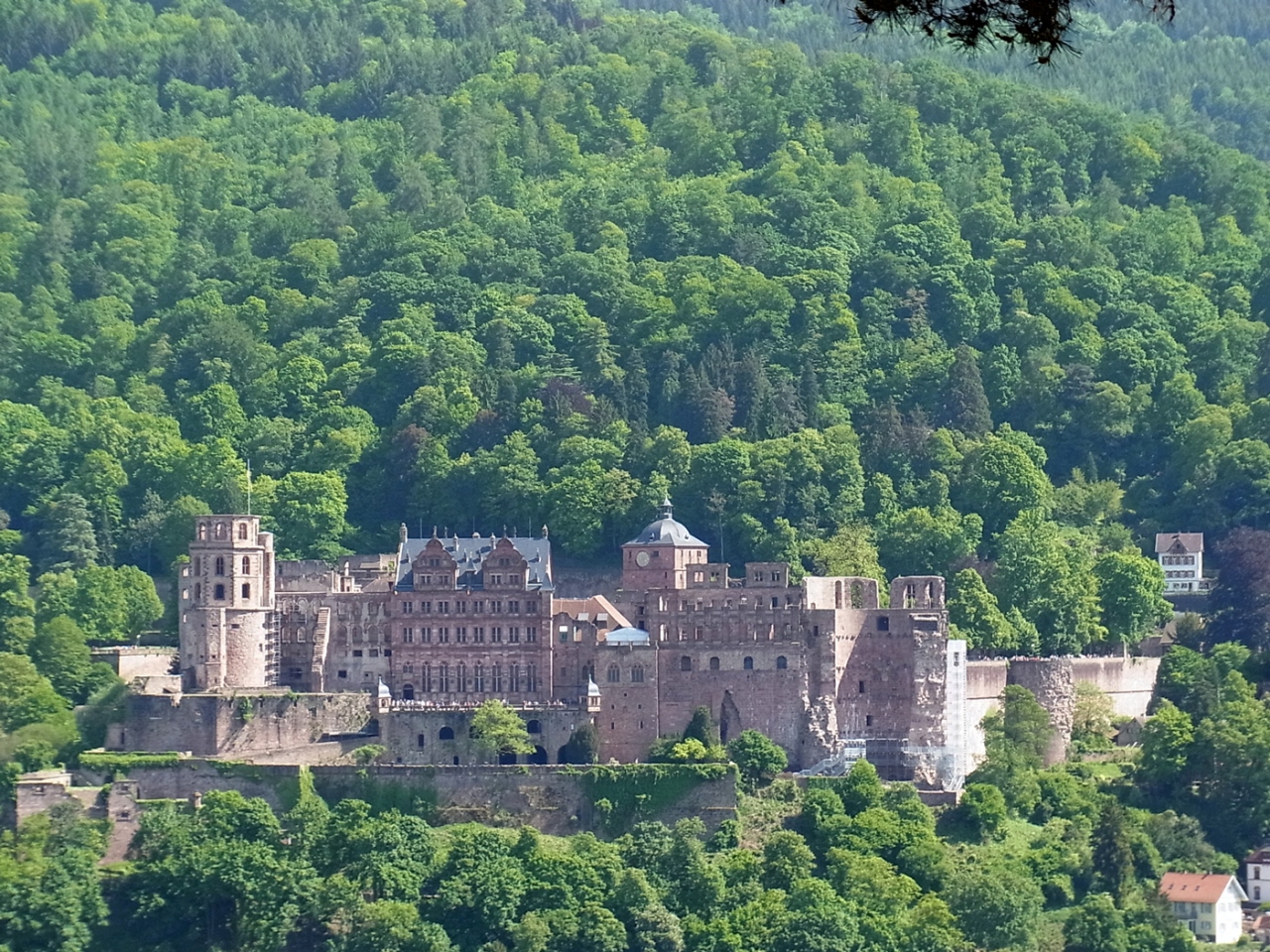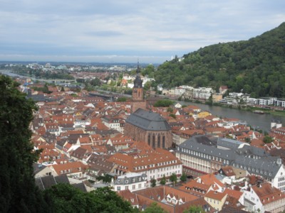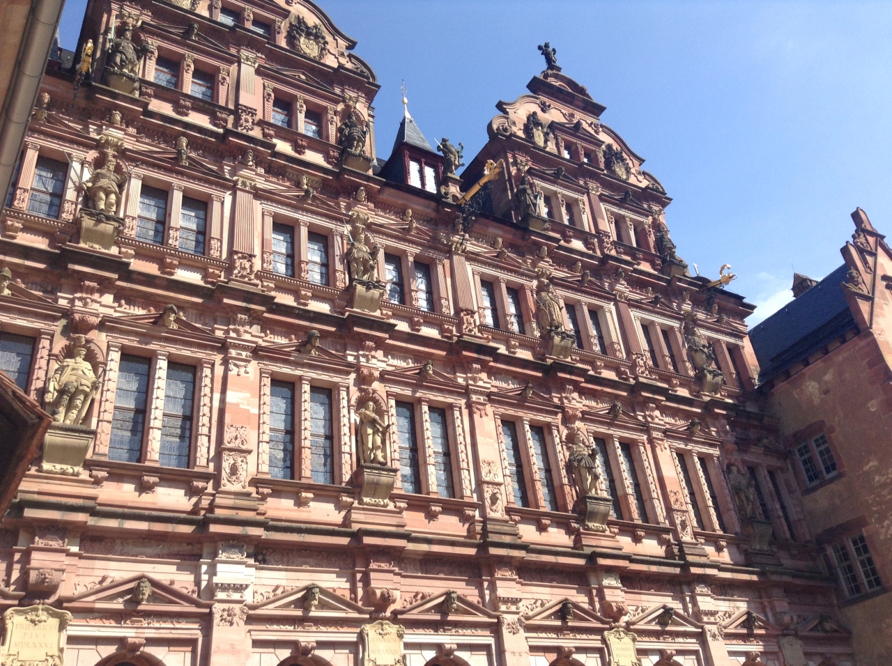 ツアー開始までの間や、ツアーに参加しない場合も、アーチをくぐった先が広場になっていて、正面にお城、右手に薬事博物館があるので、まずはお城の右脇の小さなアーチを入りましょう。その先が展望スポットのバルコニーになっていて、ハイデルベルクの街並みのパノラマが素晴らしいです。