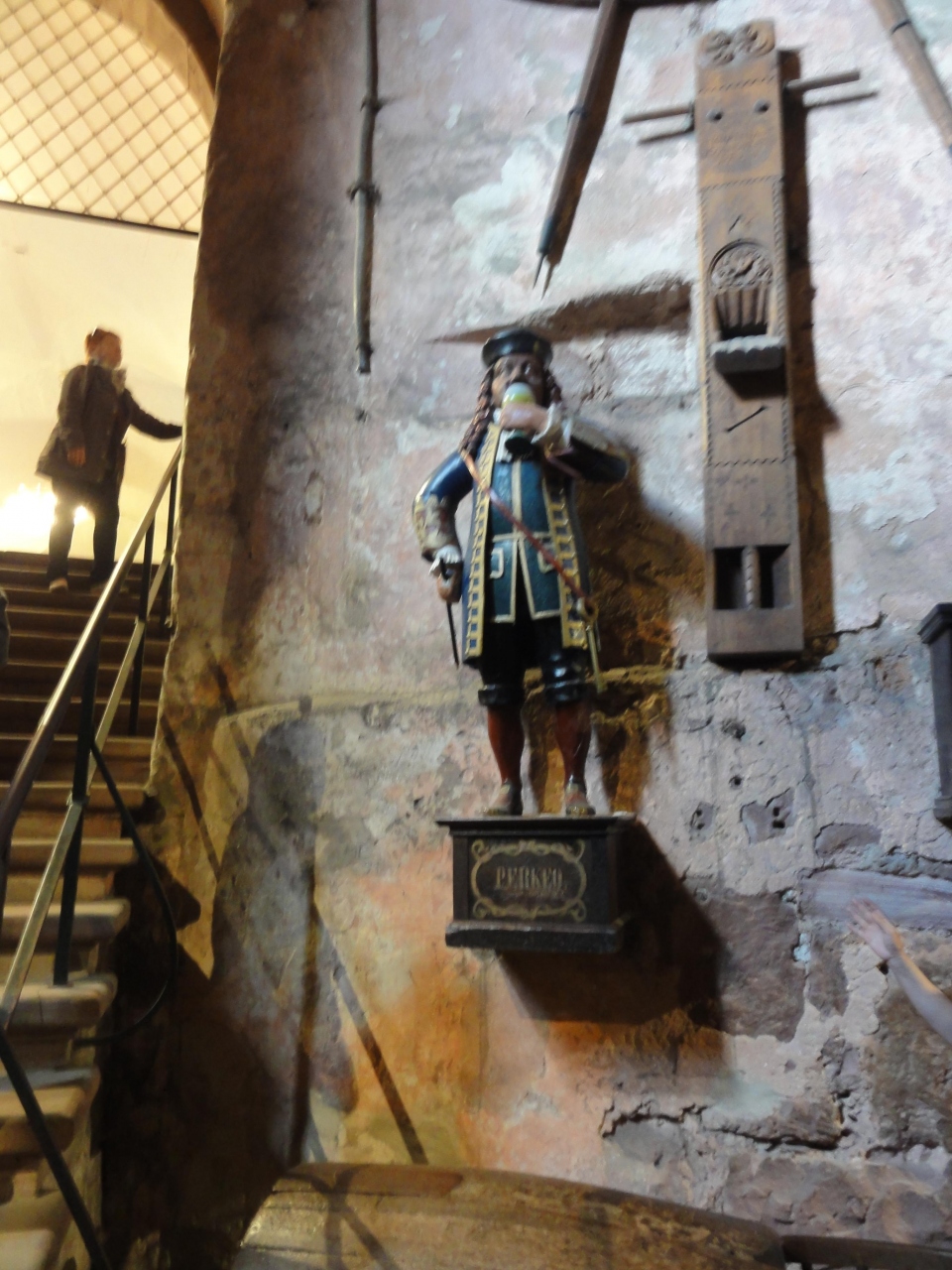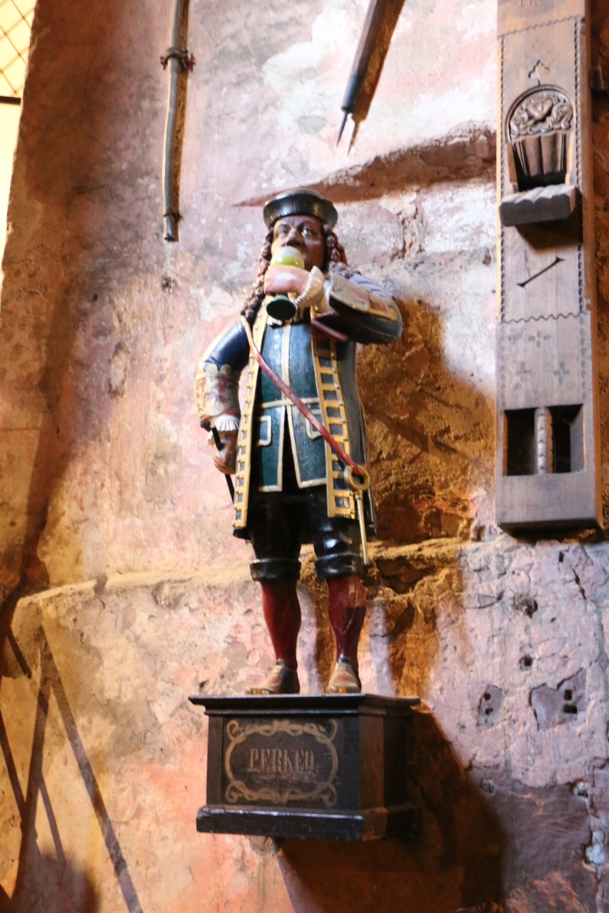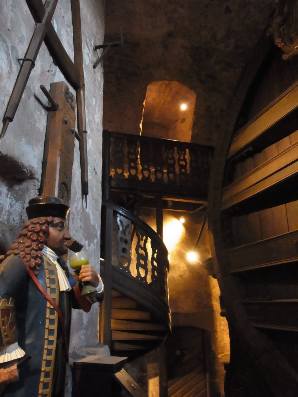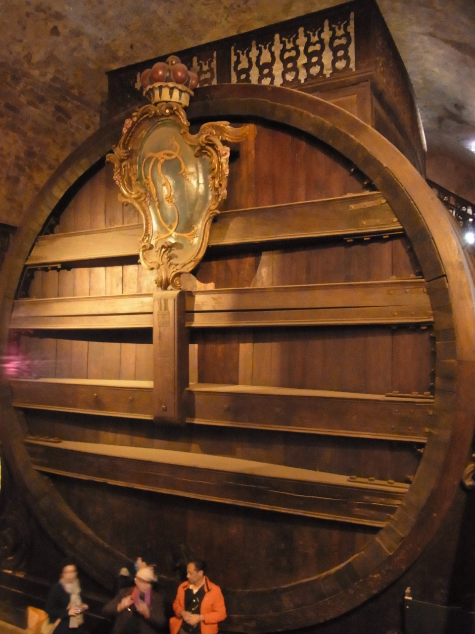お城の正面から左に下がっていくスロープをたどるとワインセラーに入り、ここには有名な大きなワイン樽があります。
