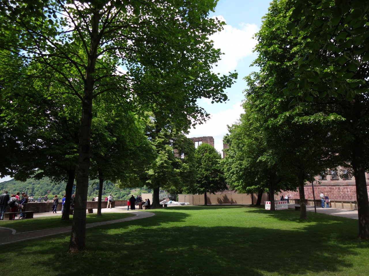 ハイデルベルグ駅前からトラムに乗り、ケーブルカーに乗ればお城の前に出る事ができます。ケーブルカーの駅を降り、駅を背にして右... 続きを読むに行けばまずチケットブースがあります。ガイドツアーの集合場所は、そこからまだ2-3分歩きますので、万が一迷った時のことも考えて5分は余裕を見た方がいいです。荒廃したお城なので、家具や調度品などを見て周るようなツアーではありませんが、英語のツアーもあるので、城の歴史など詳細が分かって結構面白かったです。とにかく広い敷地で、世界一大きな樽のあるワイン蔵、崩れた城砦など敷地にはガイドツアーで周らない部分にも見所が沢山ありますので、ガイドツアーと合わせて散策を楽しむと良いと思います。特にフリードリヒ館のテラスからの眺めは最高で、ガイドツアーの前に見て、見納めにツアー後にもう一度立ち寄りました。そうしたくなる素晴らしさです。 閉じる