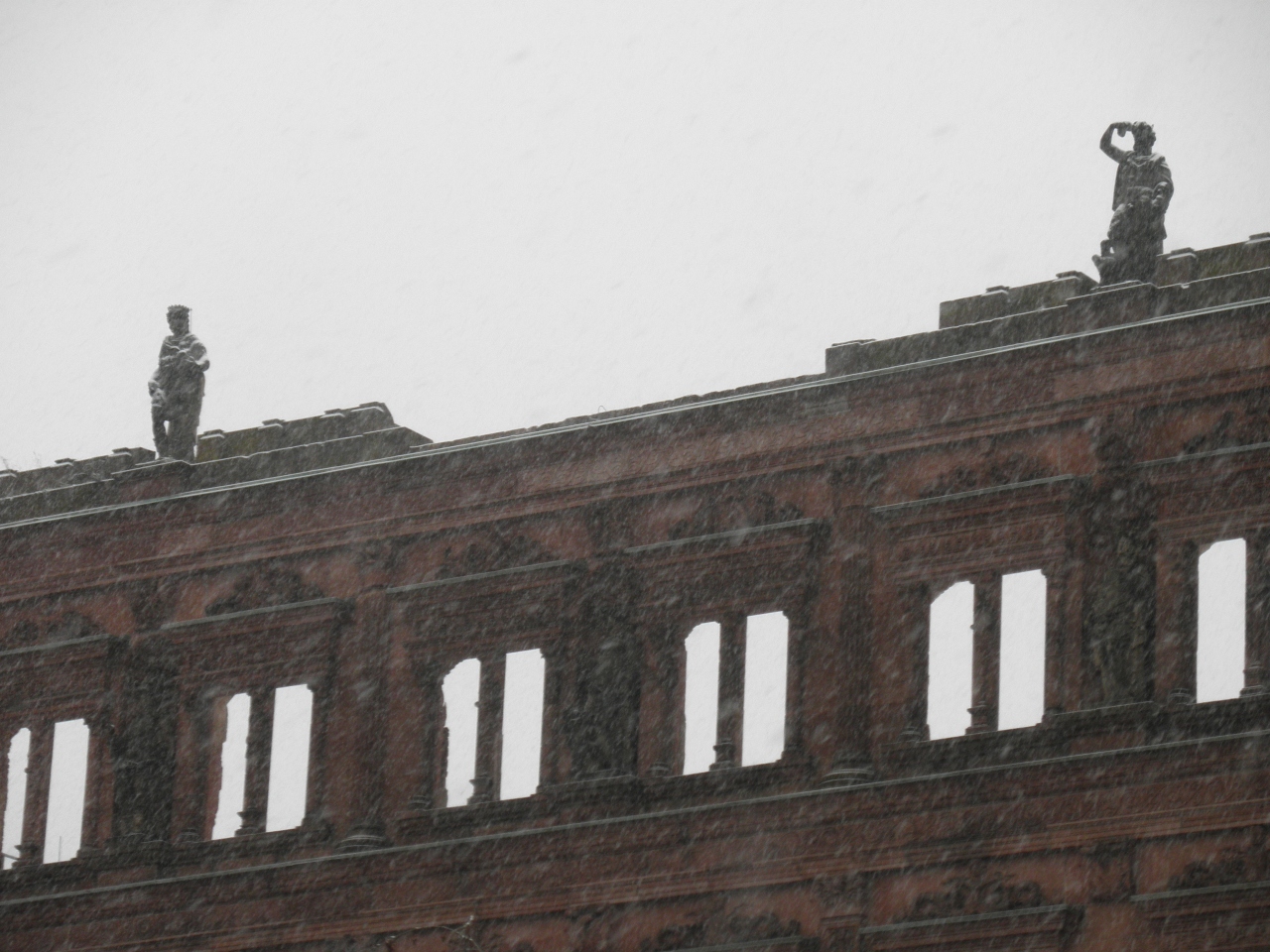 近辺で取れる、鉄分の多い赤色砂岩で城は作られているため、全体に赤っぽい色に染まっています。城は代々の王様の権力の象徴であり... 続きを読む、芸術意識の表現でもあり、何度も増改築をされたため、いろいろな建築様式の混ざる複雑な構造となりましたが、30年戦争とプファルツ継承戦争によって破壊されてしまったため、お城は内部見学よりも遠くからどっしりとした姿を眺める方が魅力的な気がします。写真スポットは、旧市街、カールテオドール橋の中央あたりからお城をバックに記念写真を撮ると良いです。
