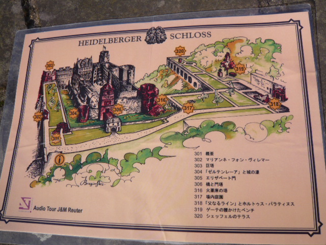 城址のテラスからの眺めも好ましく、ネッカー川畔から城址を見上げるのも、哲学者の道から見る城址・旧市街・古橋など一帯の景観も実に素晴らしい。