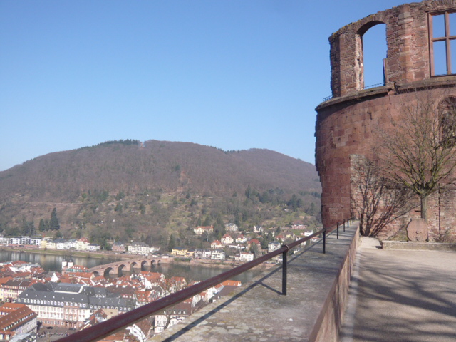 地下のワイン用木製大樽を一周したら、フリードリッヒ館のバルコニーから、ハイデルベルグ旧市街、ネッカー川を腰をかけてしばらく眺めましょう。この街で一番好きなところです。