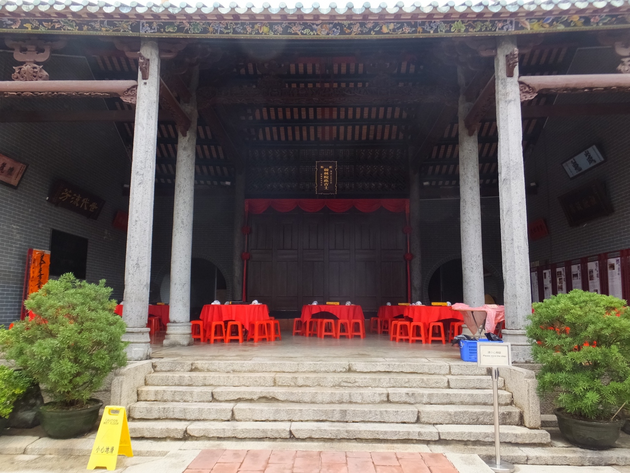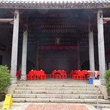 手前にイスとテーブルが並ぶ、国慶節時の入口付近の様子