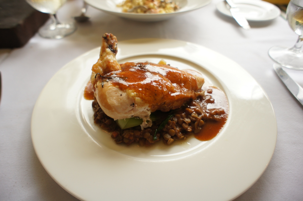 たっぷりのハムと無花果が乗ったサラダとダックレッグのワインソース、デザートはメレンゲをチョイス。どれも美味しくいただきましたが、特にデザートのメレンゲは最高!