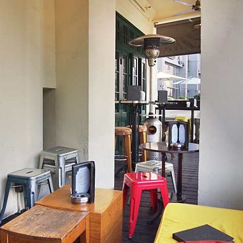 古い建物を改装したテラス付きのお洒落なカフェ&レストラン
