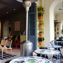 ゆったりティータイムは趣のある建物のテラスから