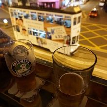3階が英国料理のレストラン、2階がスコッチとビール中心のバーになっています。2階に上がったら、テラス席を取ることをオススメします。湾仔のど真ん中、トラムのチンチ~ンという音や、サッカー場のざわめきを耳にしながら、ゆったりと飲むことができます。