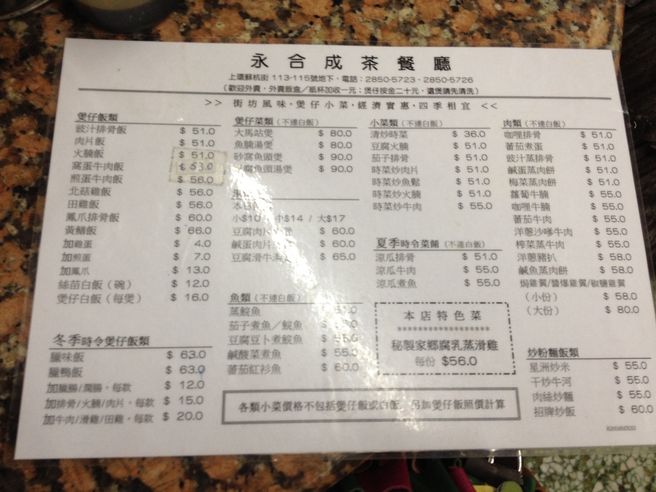 永合成茶餐廳 Wing Hap Shing Restaurant
