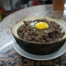 ガイドブックに載っていた定番の牛ひき肉と卵の釜めしを一つオーダー、他は何かわからないけど頼んでみようと適当にメニュー表から注文。