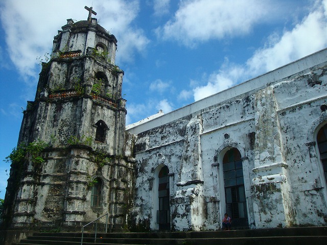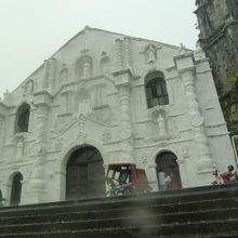 マヨン火山の噴火にも耐えた教会 外装は改修工事で白く綺麗になってました