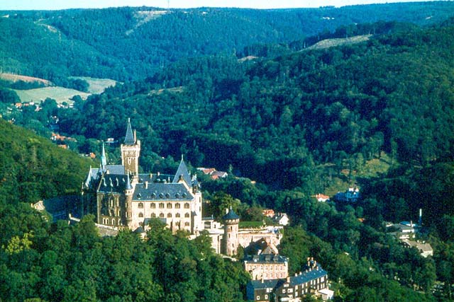 この城はヴェルニゲローデ伯爵が1120年に完成したもので、30年戦争などで荒廃し、1858年、バロック・ネオゴシック様式の城に改築された。