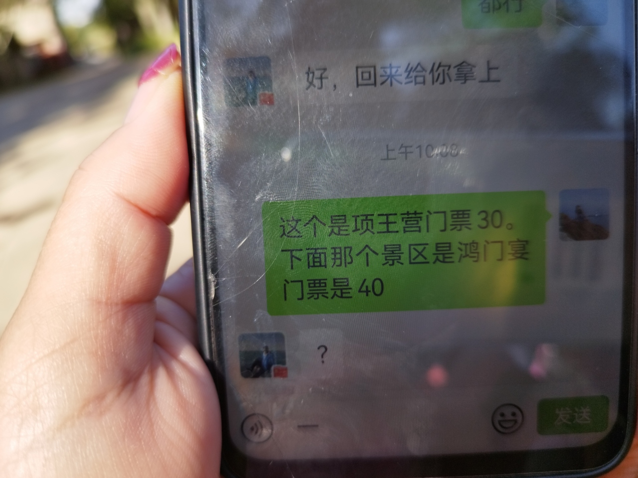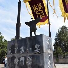 帰りのバスを待っている位置から見た「鴻門宴景区」の標識