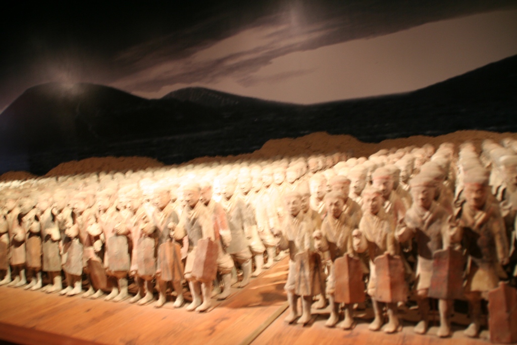 漢代の兵馬俑、秦始皇帝陵の兵馬俑と違って小さい