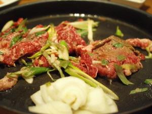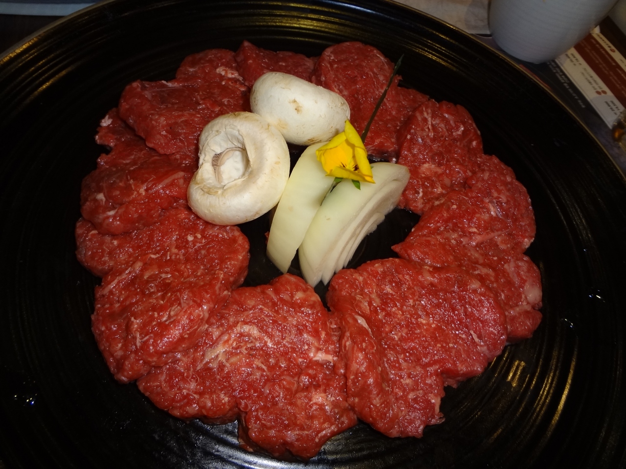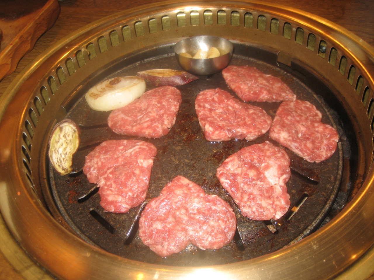 プルコギを2人前注文したつもりでしたが、普通のプルコギではないものを注文してしまいました。美味しかったので良かったのですが!お肉をハートの形にお店の人が焼いてくれました。
