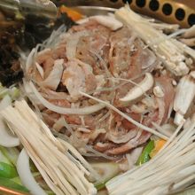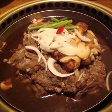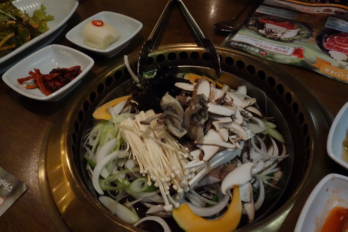 メインのプルコギは 店員さんが調理してくれます。お肉たっぷりの甘いお鍋のようです。