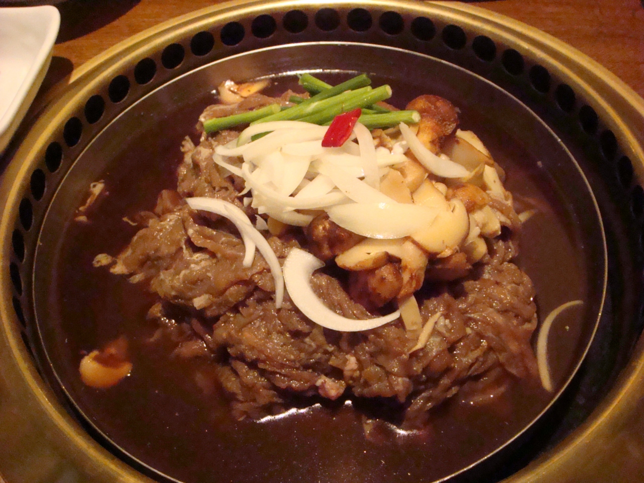 ここは多分日本でも有名なお店だと思います。プルコギ鍋が食べられます。日本語メニューもあり、日本語も通じます。ただ、全席禁煙で、入口の喫煙場所でしか吸えません。プルコギ鍋は、それだけなので、水冷麺とユッケビビンパを追加で頼みました。味は、私にとっては普通のプルコギかな?って感じ。美味しいです。でも特別ではない感じでした。ただ、とても綺麗なお店です。テーブルに店員呼び出しボタンも付いていて、押すとすぐに店員さんがやって来ます。禁煙だったために、あまりビール4本だけで、3人で合計90,000ウォンでした。今日のレートで、6,750円位。一人当たり2,250円位ですね。安かったです。場所はとても便利な明洞のソウルロイヤルホテルの正面向かって左隣にあります。 閉じる投稿日:2009/07/19
