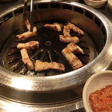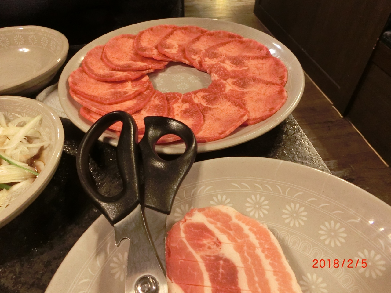 孫が牛タン、豚は三枚肉 サムギョプサル、爺やがチャドルバギ。