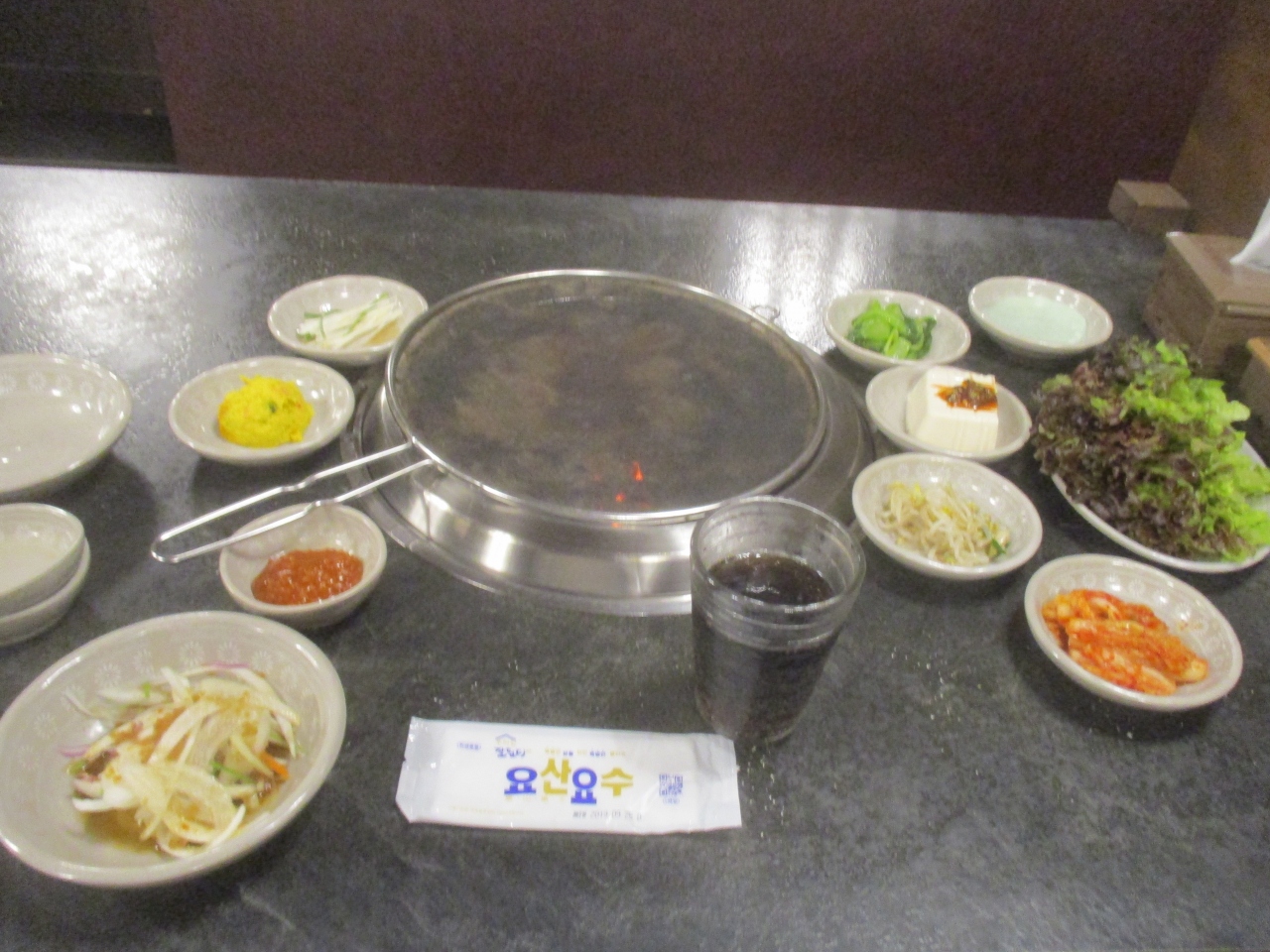 チャドルバギは薄い牛肉で鉄板で焼くとすぐに焼けて味付けのしてある玉ねぎを巻いて食べます。初めて食べましたが本当においしくて、これを食べるのにもう一度韓国へ行きたいと思いました。