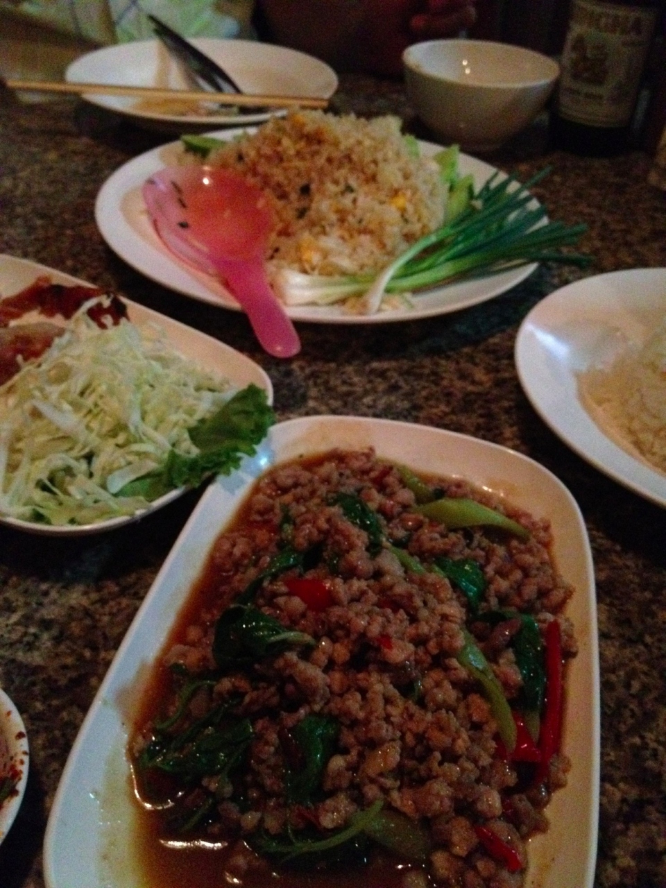 ソイカウボーイのすぐそばに有るので、深夜になると連れ出したお姉ちゃん達と一緒にワイワイがやがや食べてるグループも居ますが、普通のお食事の時間は適度に混んでいる程度。