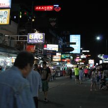 自動車が対面通行するのに十分な幅の道にはTシャツ、タンクトップ姿の若者が溢れ、道の両側に土産物屋や飲食店が並びます。